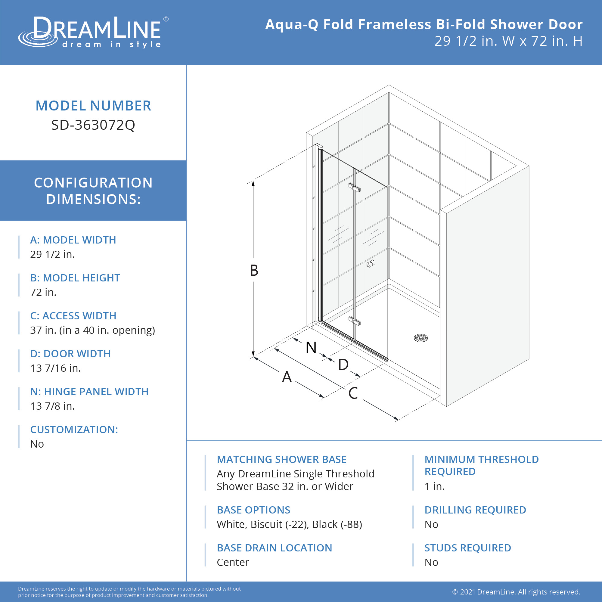 | 9 Set - Bullet 02 | Walk-in Opening: 45 in. (in a 48 in. opening); 57 in. (in a 60 in. opening) |