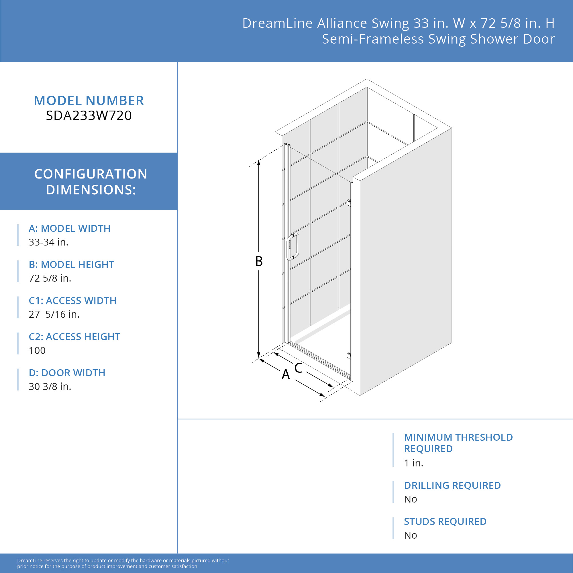 | 9 Set - Bullet 01 | Model Size: 33 - 34 in. W x 72 5/8 in. H; Walk-in Opening: 27 5/16 in. |