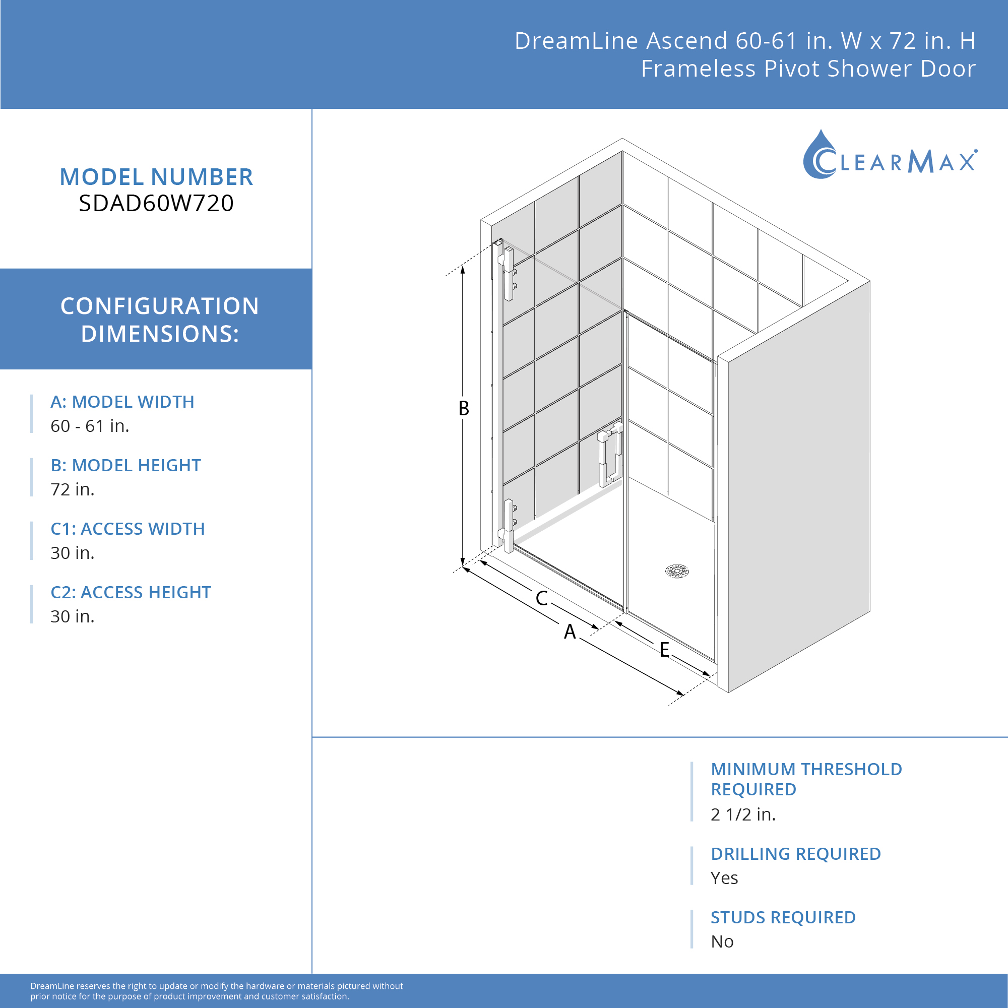 | 9 Set - Bullet 01 | Model Size: 60-61 in. W x 72 in. H; Walk-In Opening: 25 in. |