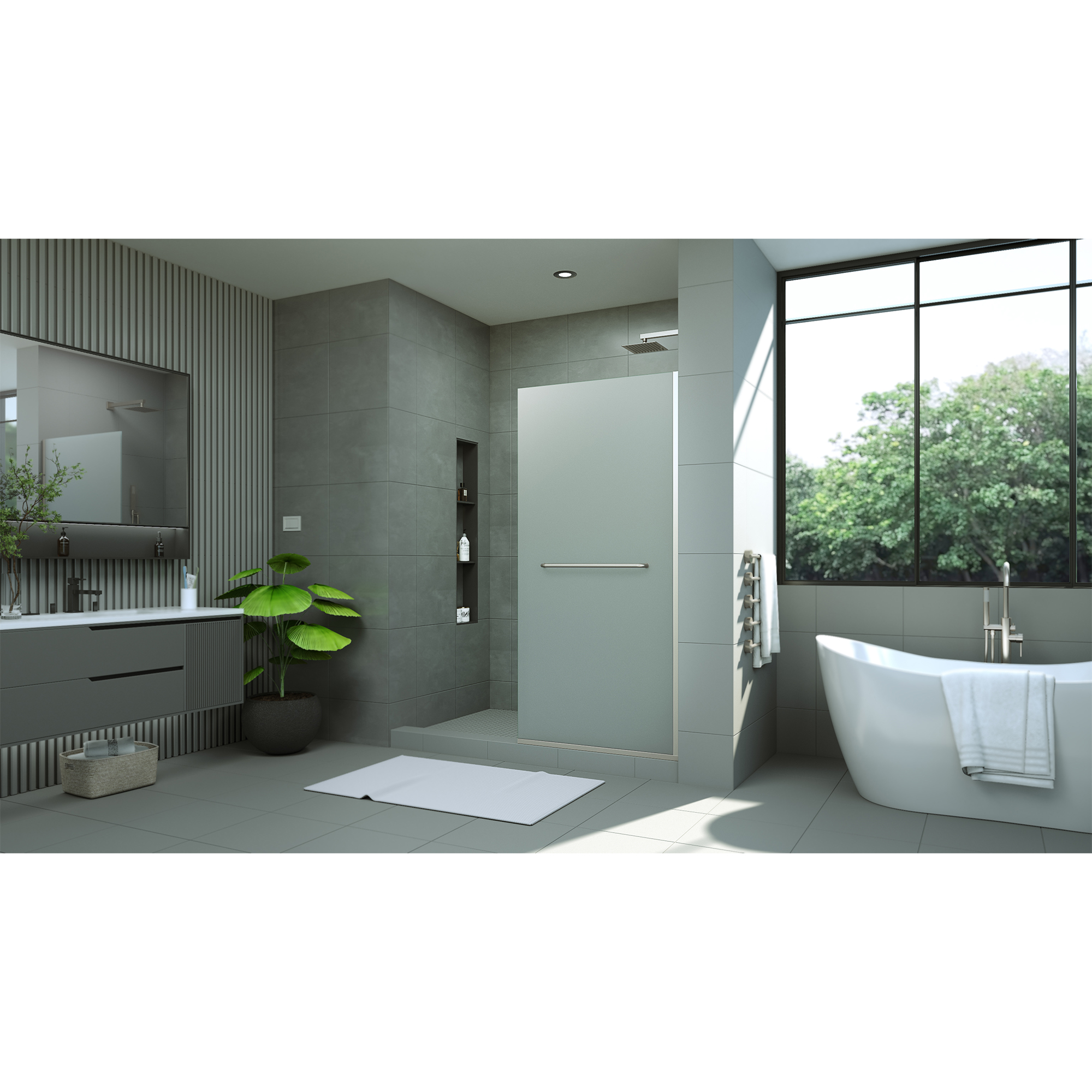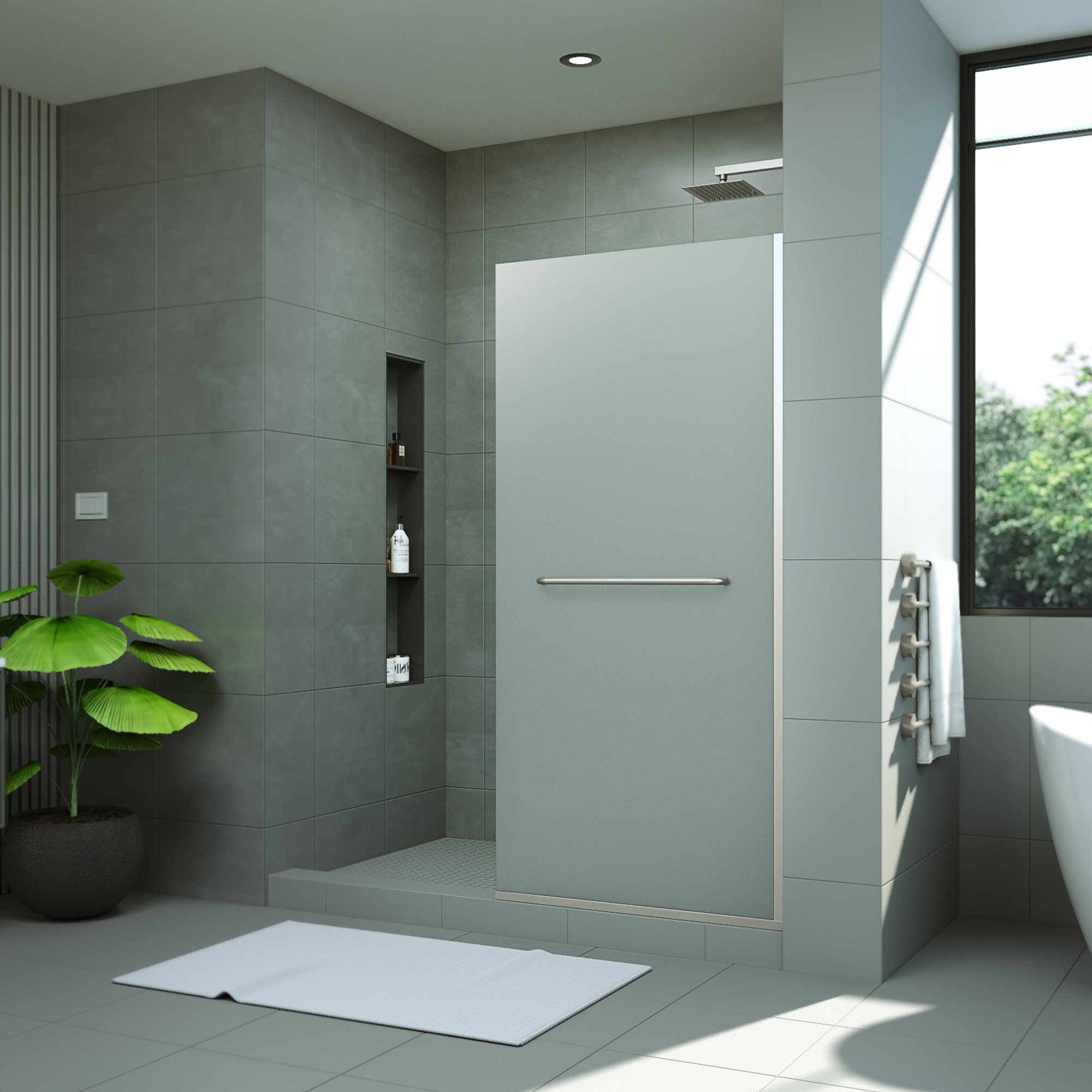 | 9 Set - Bullet 03 | Frameless walk-in shower design with an open-entry, doorless style |