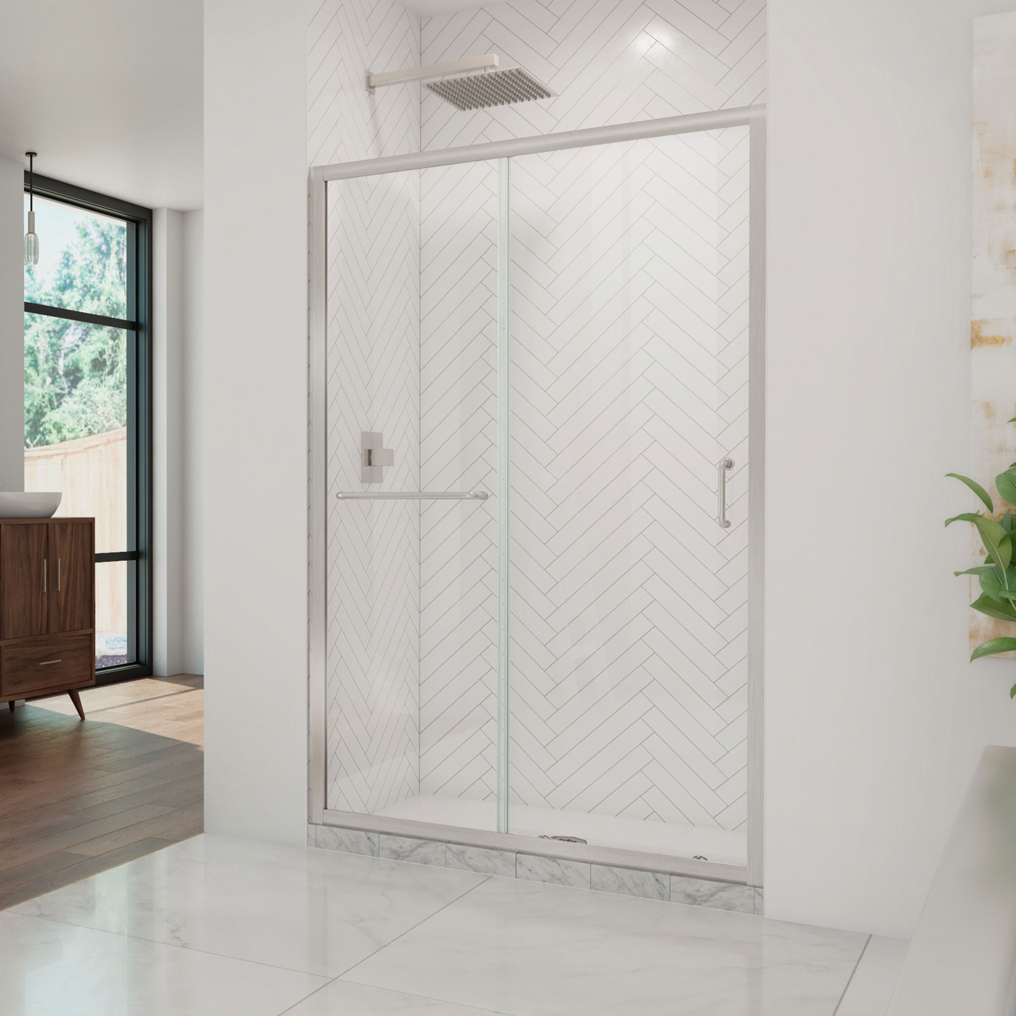 | 9 Set - Bullet 01 | Model Size: 44 - 48 in. W x 72 in. H; Walk-in Opening: 15 – 19 in.; Configuration consists of a Stationary Panel and Sliding Door |