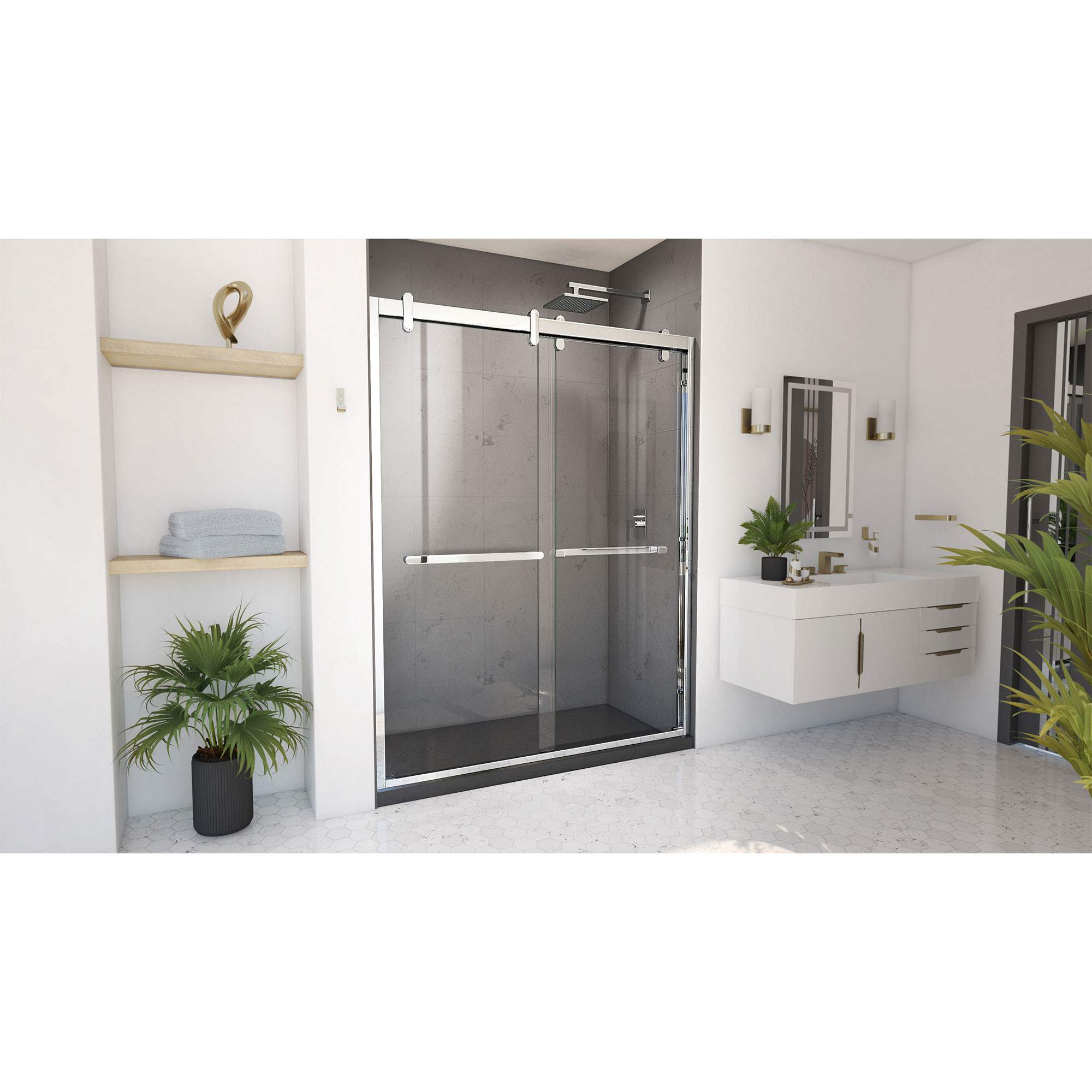 | 9 Set - Bullet 01 | Model Size: 56-60 in. W x 76 in. H (77 3/8 in. to top of rollers); Walk-in Opening: 23 1/4 - 27 1/4 in.; Hardware Finish: Polished Stainless Steel |