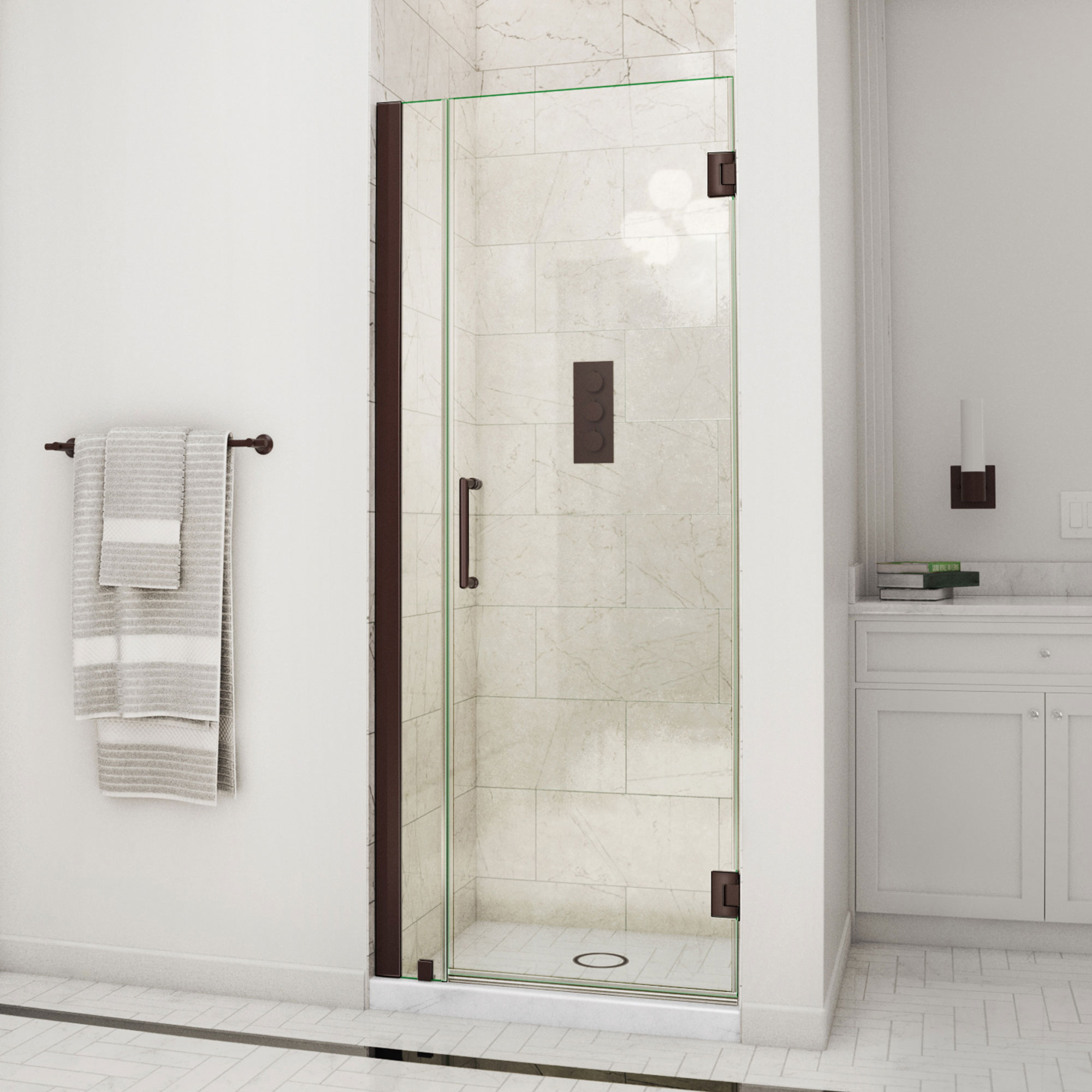 | 9 Set - Bullet 01 | Model Size: 34-35 in. W x 72 in; Walk-in Opening: 27 in.; Configuration: Shower Door with Inline panel |