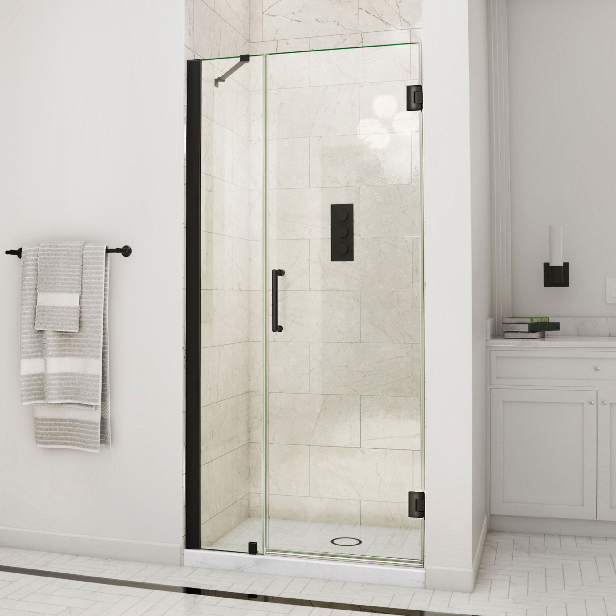 | 9 Set - Bullet 02 | Premium 3/8 in. (10mm) certified tempered glass; Frameless glass design; DreamLine ClearMax water and stain resistant glass coating |