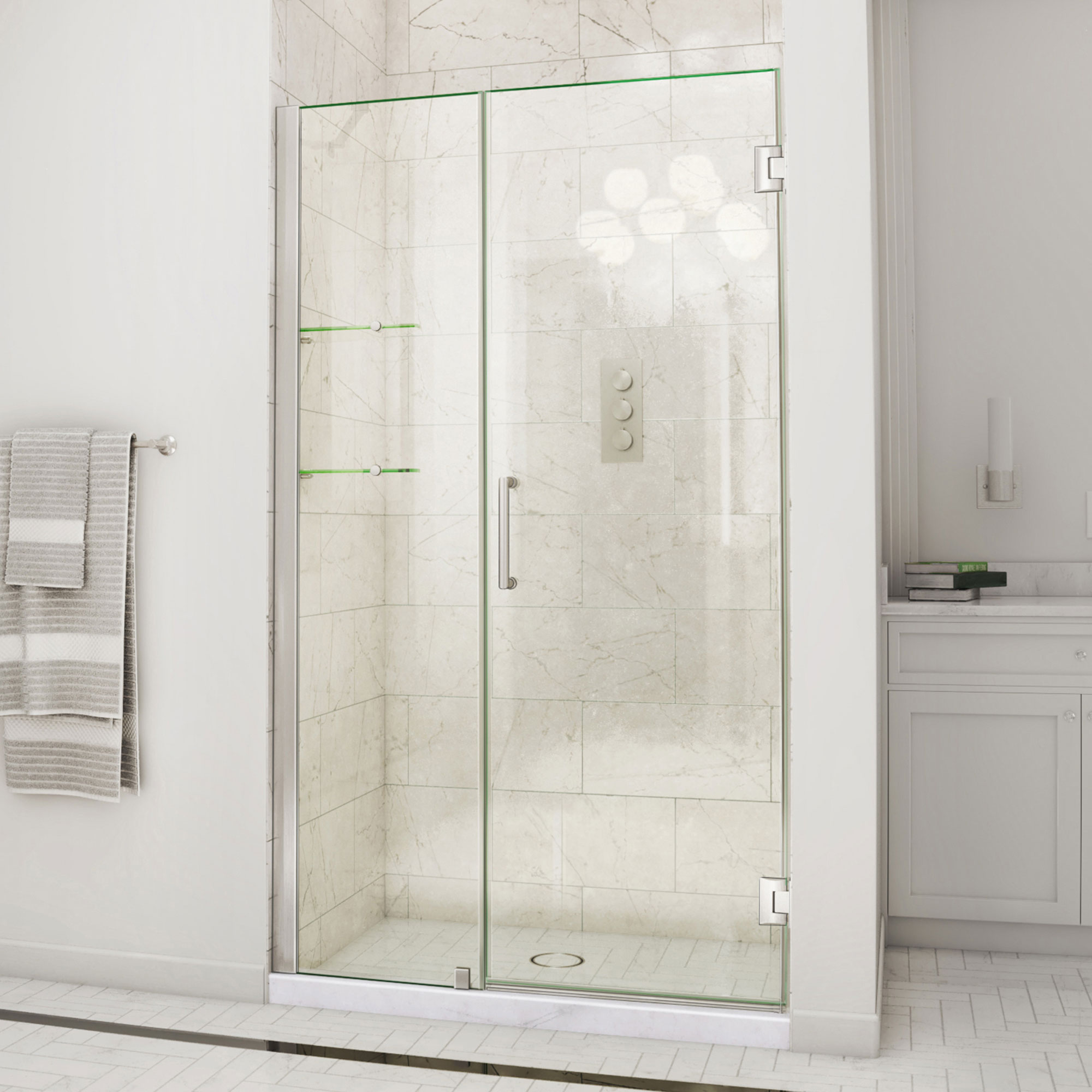 | 9 Set - Bullet 02 | Premium 3/8 in. (10mm) certified tempered glass; Frameless glass design; DreamLine ClearMax water and stain resistant glass coating |