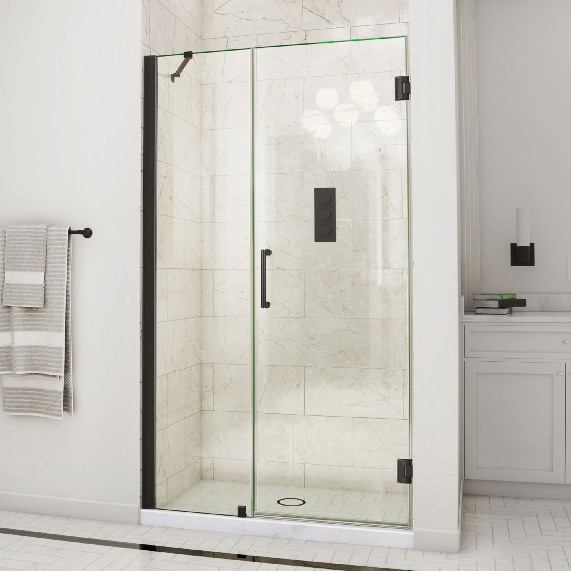 | 9 Set - Bullet 02 | Premium 3/8 in. (10mm) certified tempered glass; Frameless glass design; DreamLine ClearMax water and stain resistant glass coating |