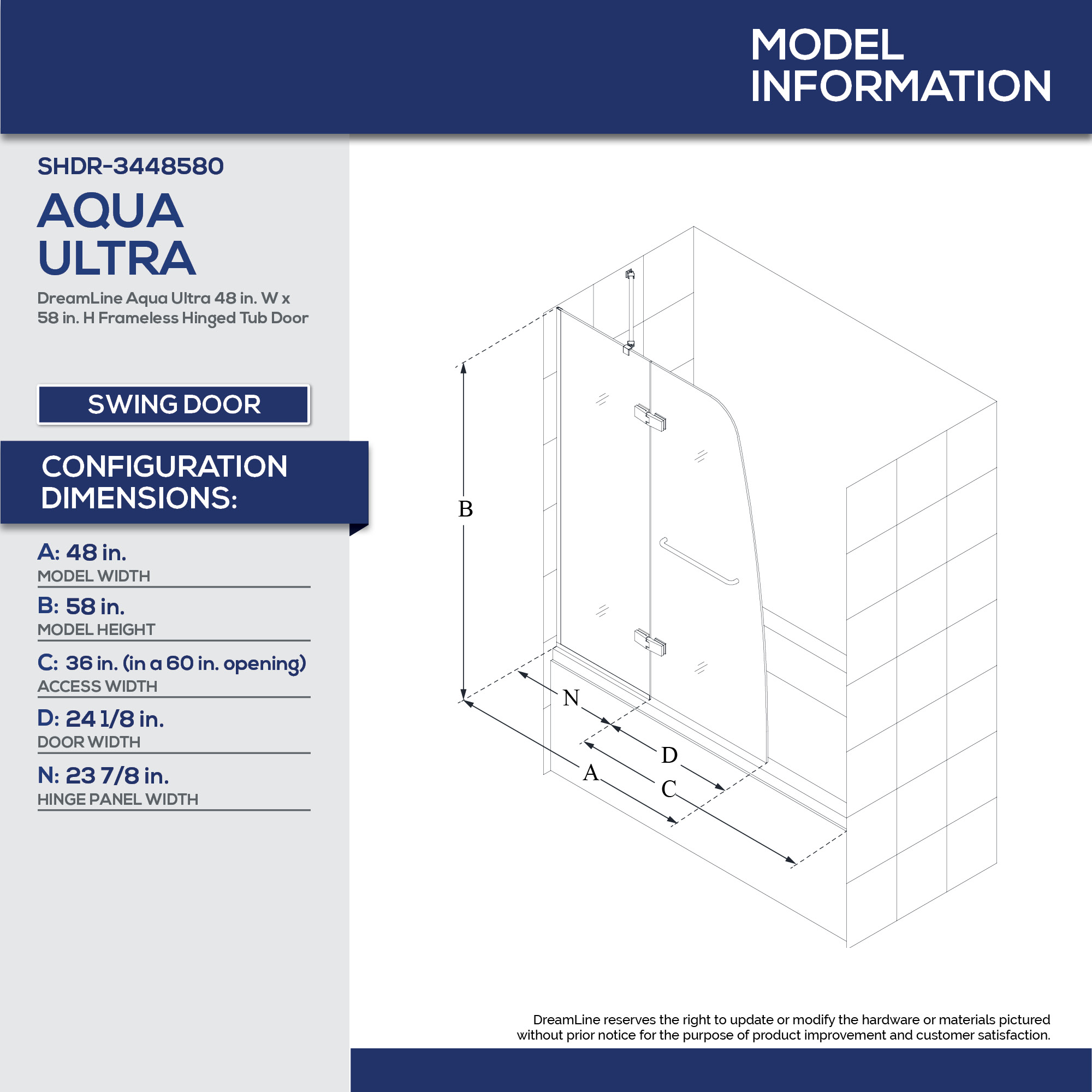 | 9 Set - Bullet 01 | Model Size: 48 in. W x 58 in. H; Walk-in Opening: 36 in. (in a 60 in. opening); Hardware Finish: Brushed Nickel |