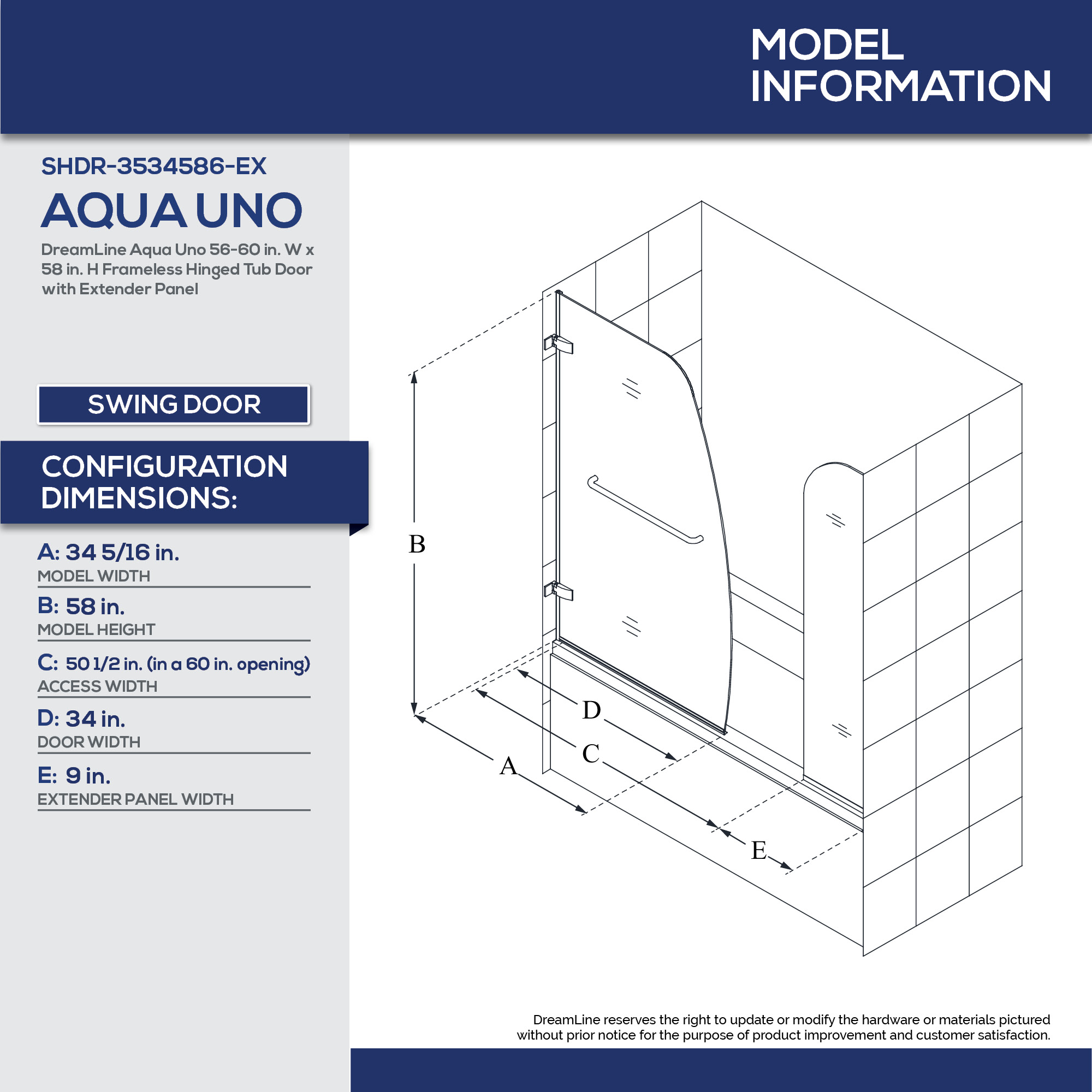 | 9 Set - Bullet 04 | Configuration consists of a Single Panel Swing Door and Extender Panel; Great choice for smaller bathrooms, where a sliding door will not work |