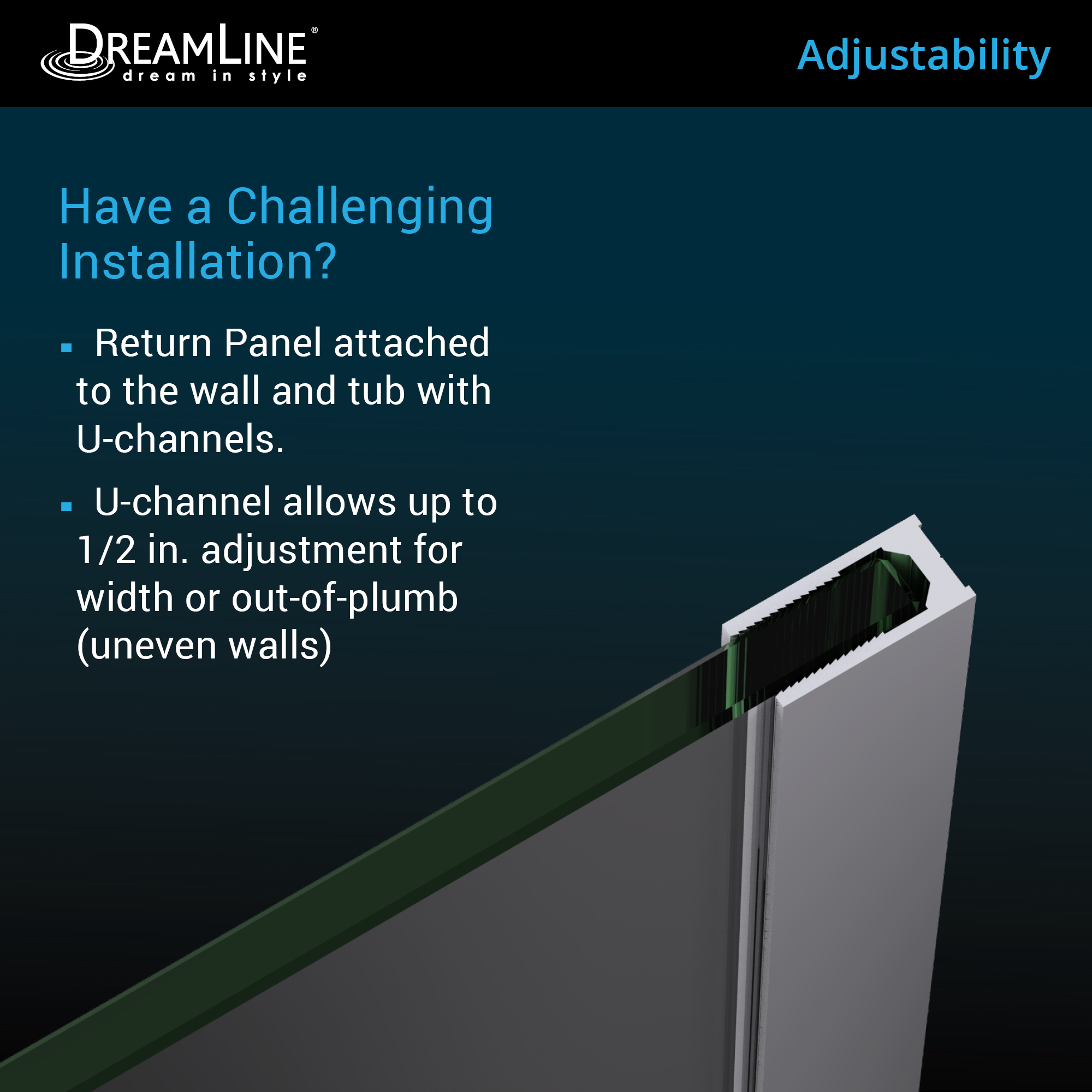 | 9 Set - Bullet 05 | Return Panel attached to the wall and tub with U-channels; U-channel allows up to 1/2 in. adjustment for width or out-of-plumb (uneven walls) |