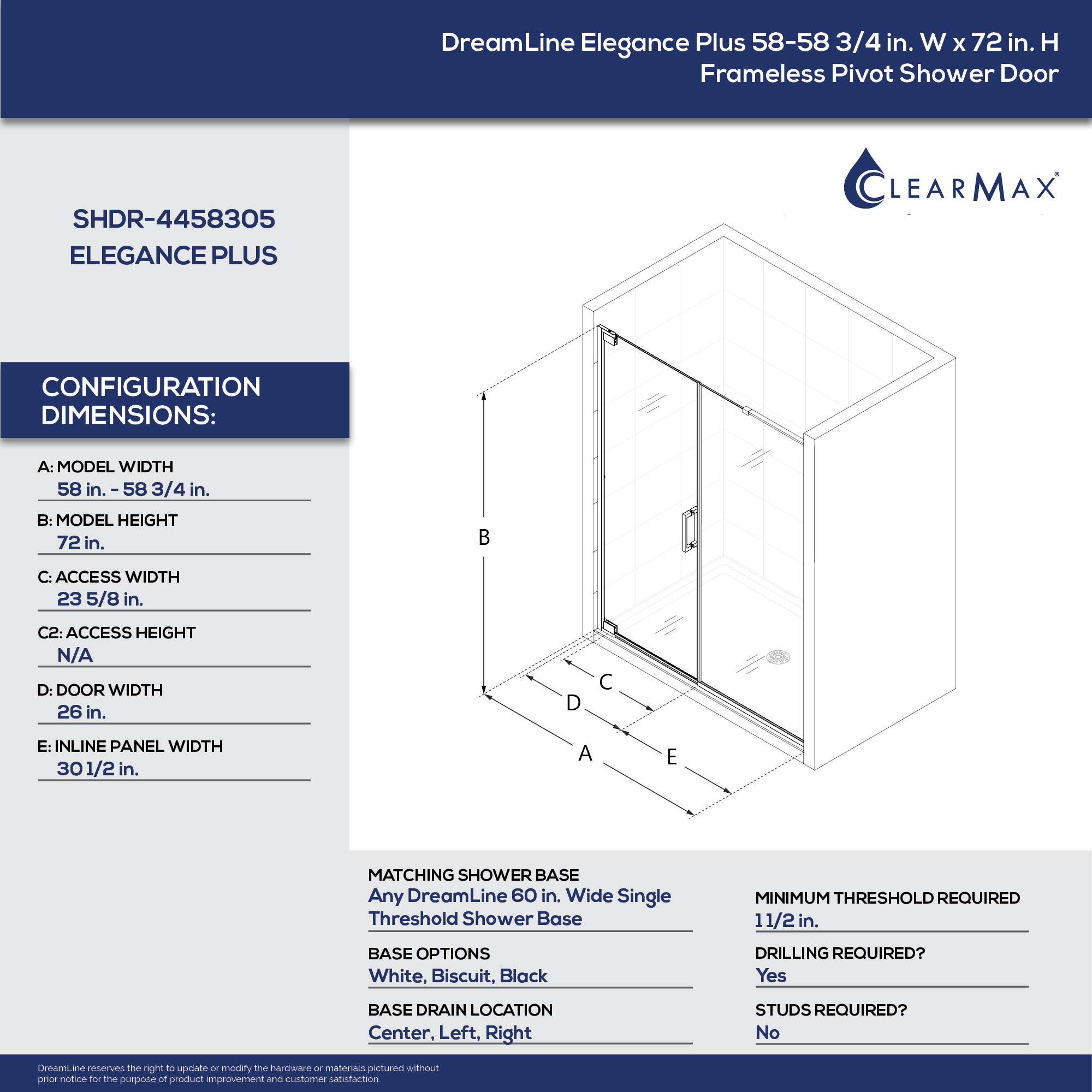 | 9 Set - Bullet 07 | Matches Any DreamLine 60" Wide Single Threshold Shower Base (sold separately) in choice of White, Biscuit or Black |