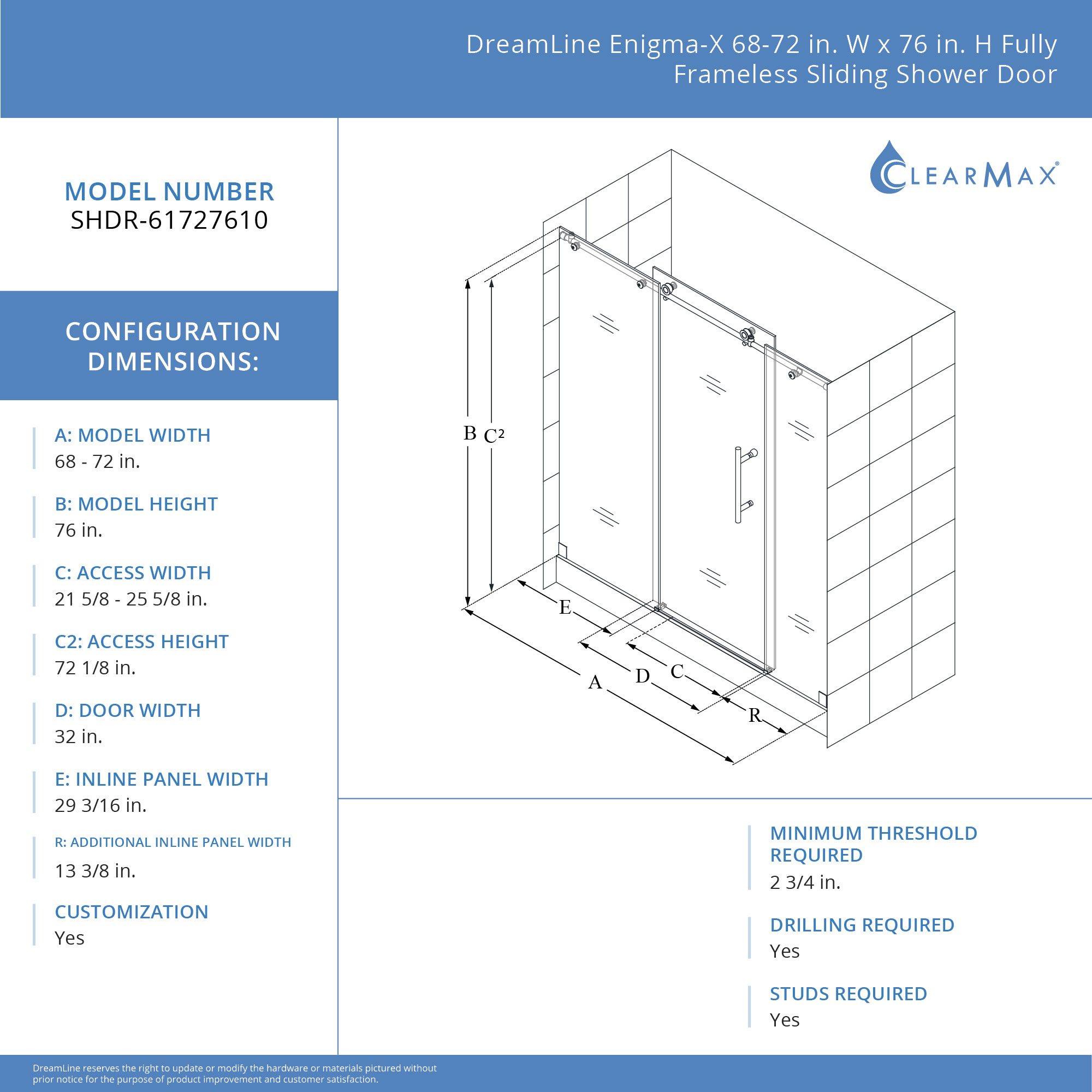 | 9 Set - Bullet 01 | Model Size: 68-72 in. W x 76 in. H; Walk-In Opening: 21 5/8 - 25 5/8 in. |