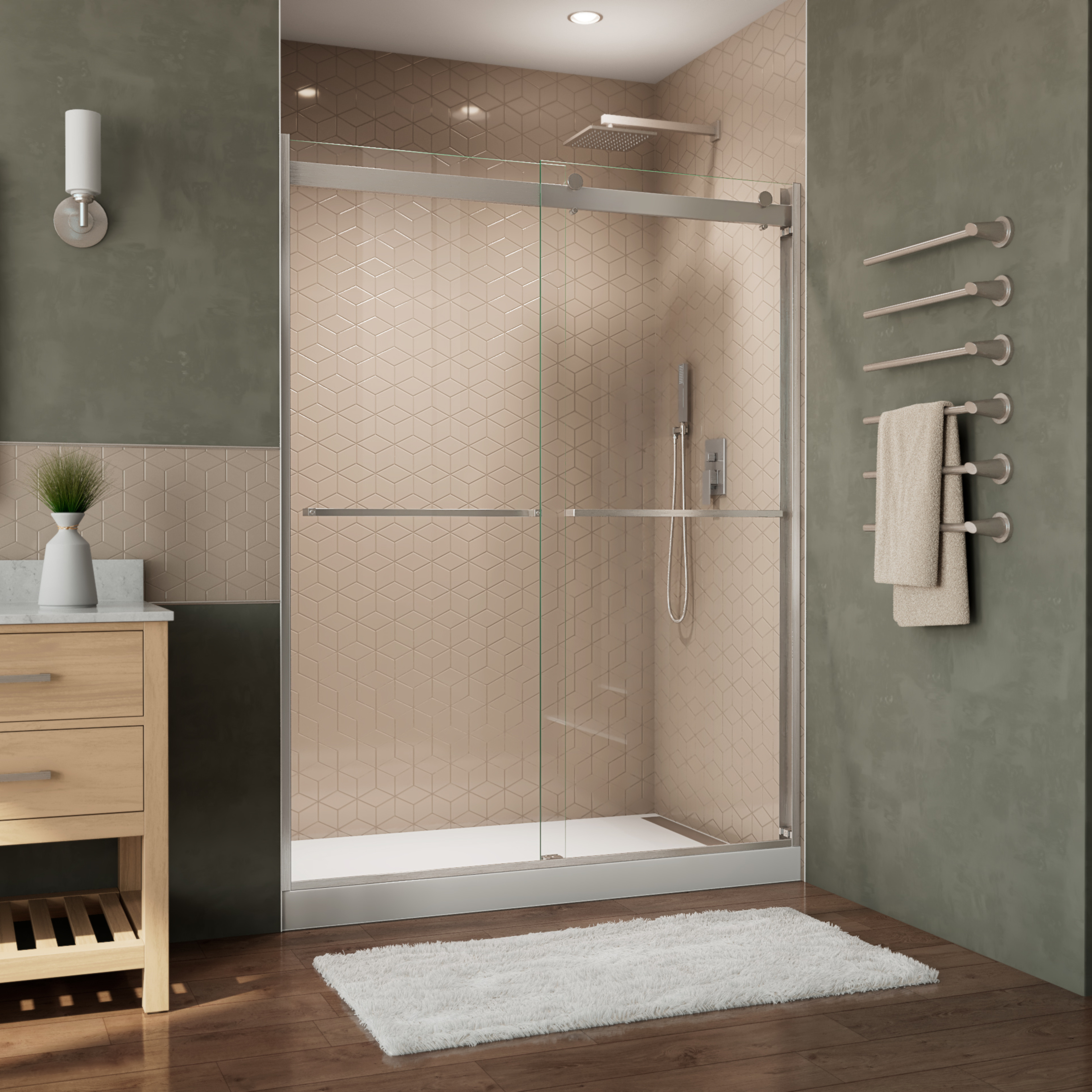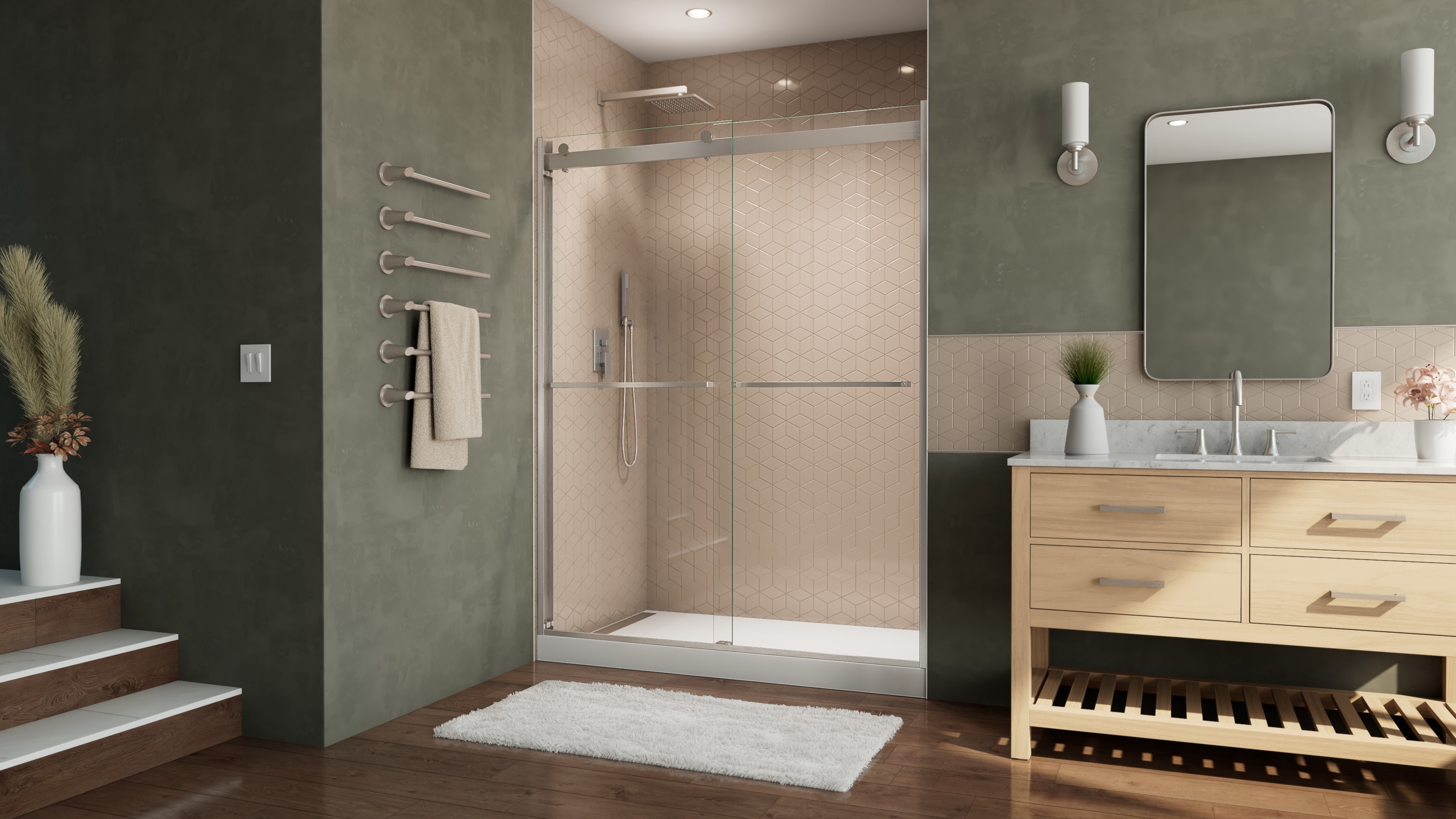| 9 Set - Bullet 01 | Model Size: 56-60 in. W x 76 in. H; Door walk-in: 23 1/4 - 27 1/4 in.; Double sliding bypass configuration allows entry from left or right side |