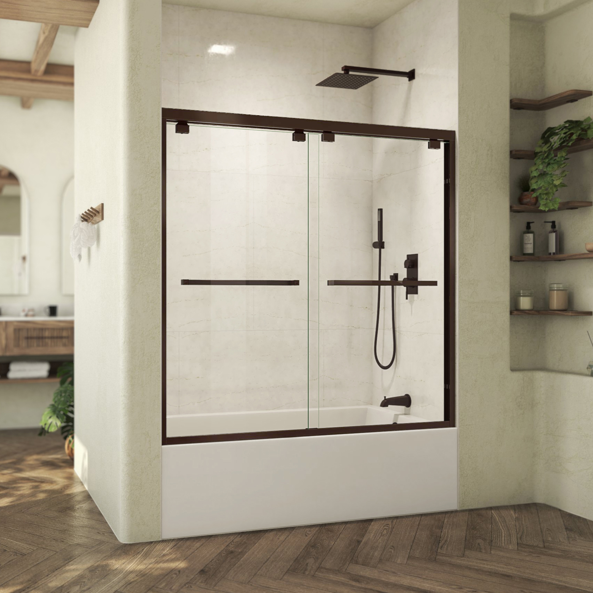 | 9 Set - Bullet 02 | Configuration: Double sliding bypass design allows entry to the shower from left or right side; Frameless glass design creates an open, airy feel |