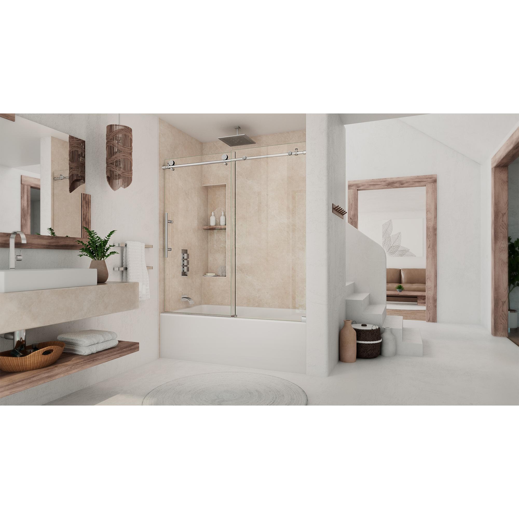 | 9 Set - Bullet 02 | Configuration consists of: Stationary Panel and Sliding Door; Double-sided door handle; Fully Frameless design for an open and spacious feeling |