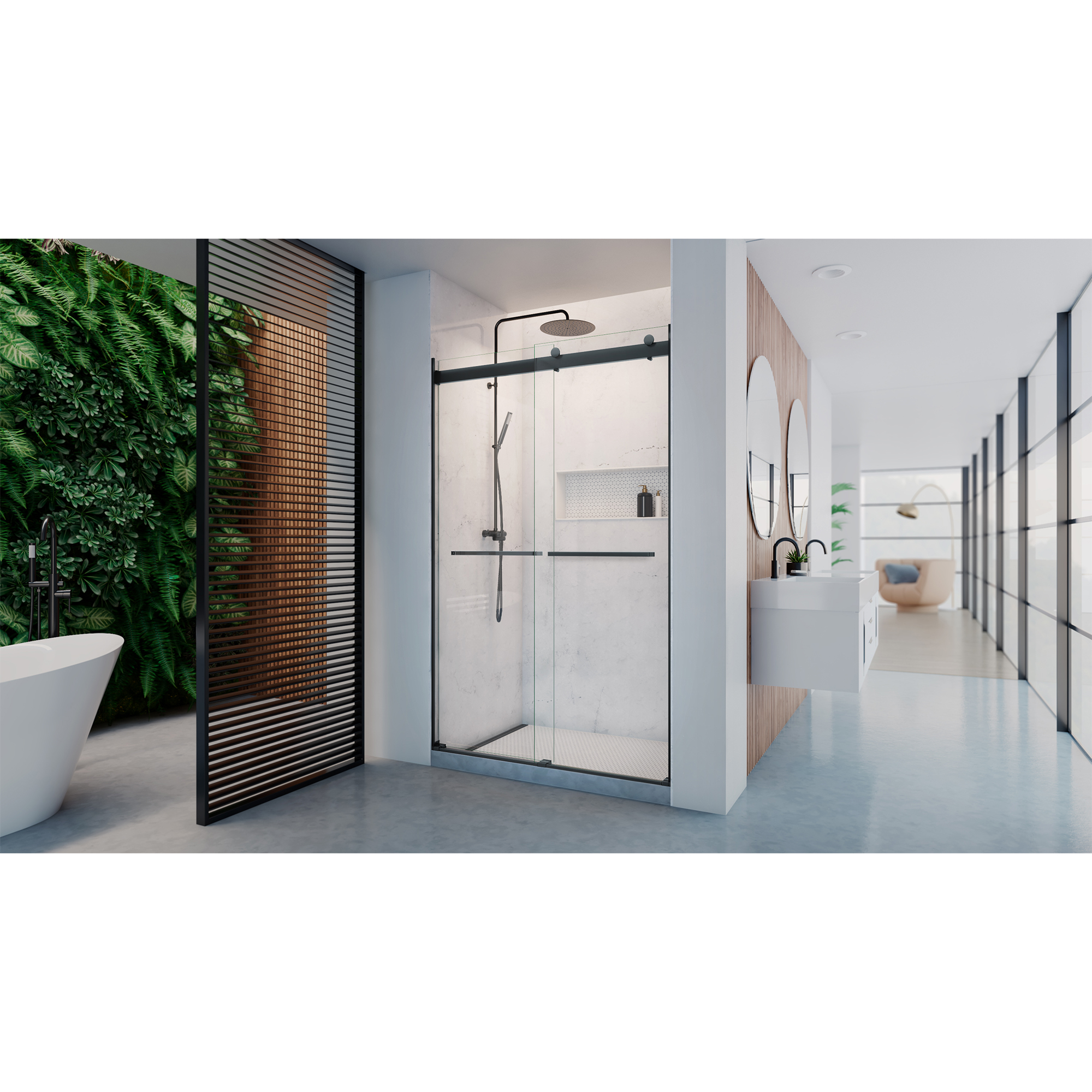 | 9 Set - Bullet 01 | Model Size: 44-48 in. W x 76 in. H; Door walk-in: 18-22 in.; Double sliding bypass configuration allows entry from left or right side |