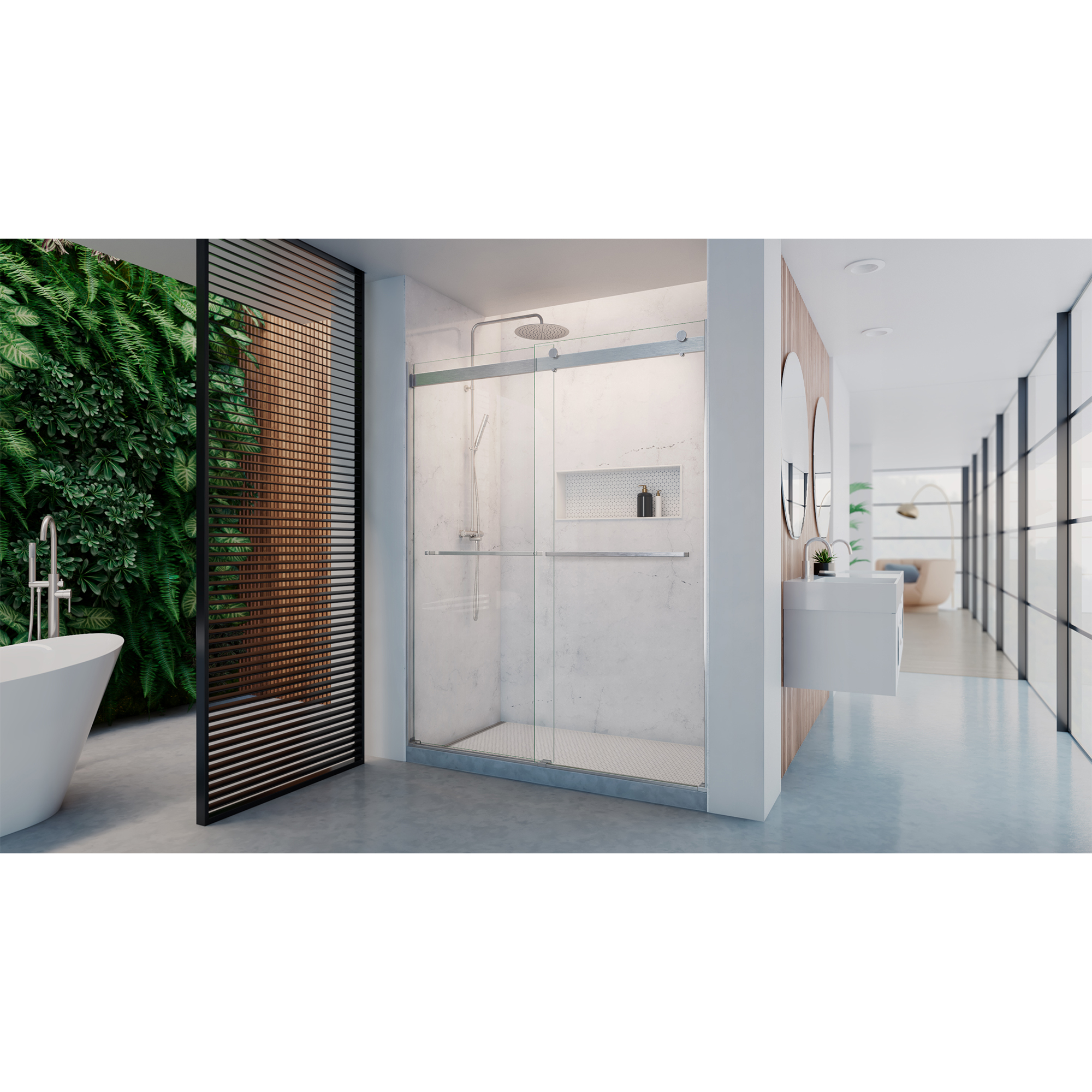 | 9 Set - Bullet 01 | Model Size: 56-60 in. W x 76 in. H; Door walk-in: 24-28 in.; Double sliding bypass configuration allows entry from left or right side |