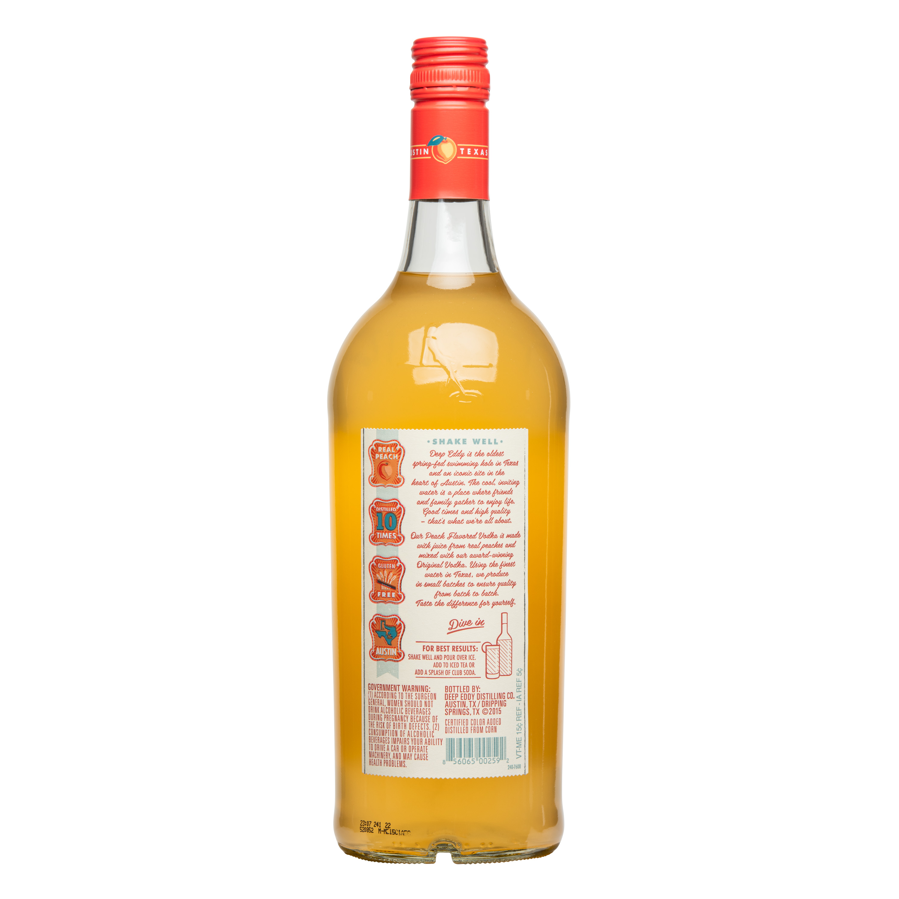 | Long Description | Deep Eddy Peach Vodka isn’t just a flavored spirit—it’s a sip of summer, a taste of sunshine, and a celebration of life’s easygoing moments. Crafted in Austin with our award-winning Original Vodka—distilled 10 times, filtered 8—and infused with real peach juice and a touch of pure cane sugar, it delivers vibrant, juicy flavor without artificial additives. Naturally gluten free and handcrafted in small batches, it’s smooth, refreshing, and versatile. Mix it with iced tea, lemonade, soda, or prosecco, or sip it simply over ice. From porch swings to backyard cookouts, Deep Eddy Peach makes every moment feel like a small celebration. Cheers to real flavor, good friends, and summer in a glass—any time of year. |