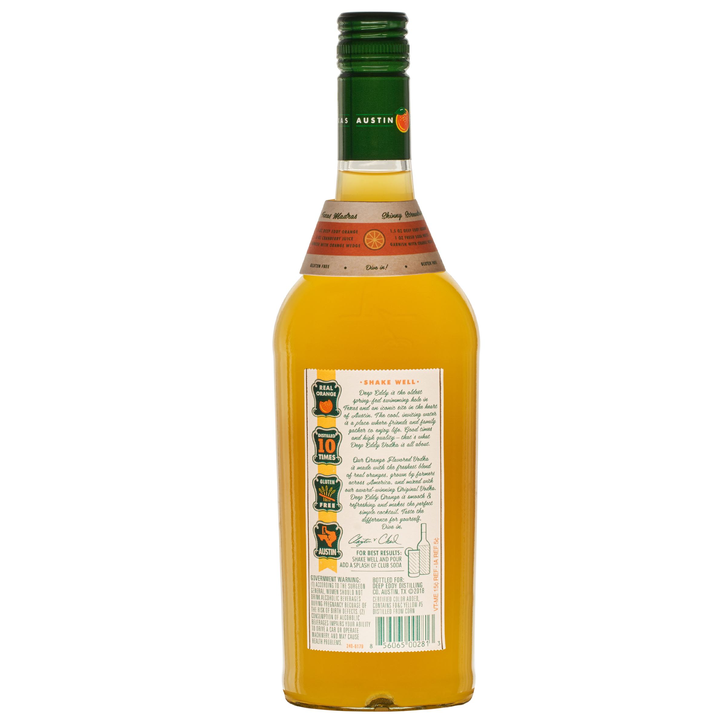 | Long Description | Deep Eddy Orange Vodka isn’t just another flavored spirit—it’s bold, bright, and refreshingly real. Made in Austin, Texas with our award-winning Original Vodka—distilled 10 times, filtered 8—and infused with real orange juice and a touch of cane sugar, it delivers smooth, juicy citrus flavor without artificial additives. Naturally gluten free and handcrafted in small batches, it’s as versatile as it is vibrant: mix with soda, cranberry, or tonic, shake into a mimosa, or sip simply over ice. Born from Austin’s laid-back spirit of fun and connection, Deep Eddy Orange was made for good friends, good music, and good times. Cheers to real citrus, real flavor, and real moments worth sharing. |