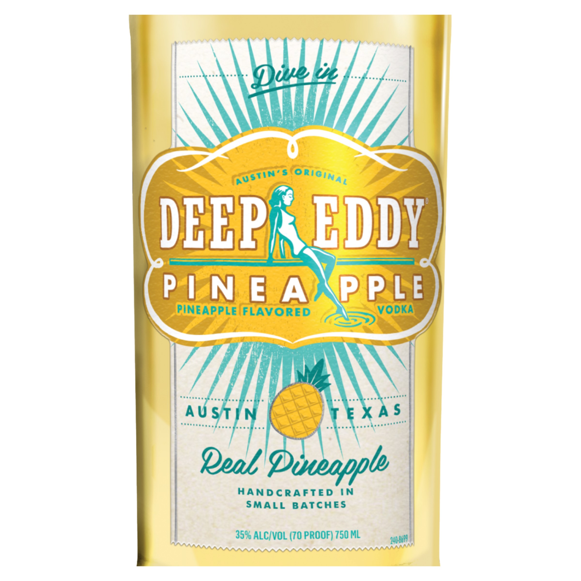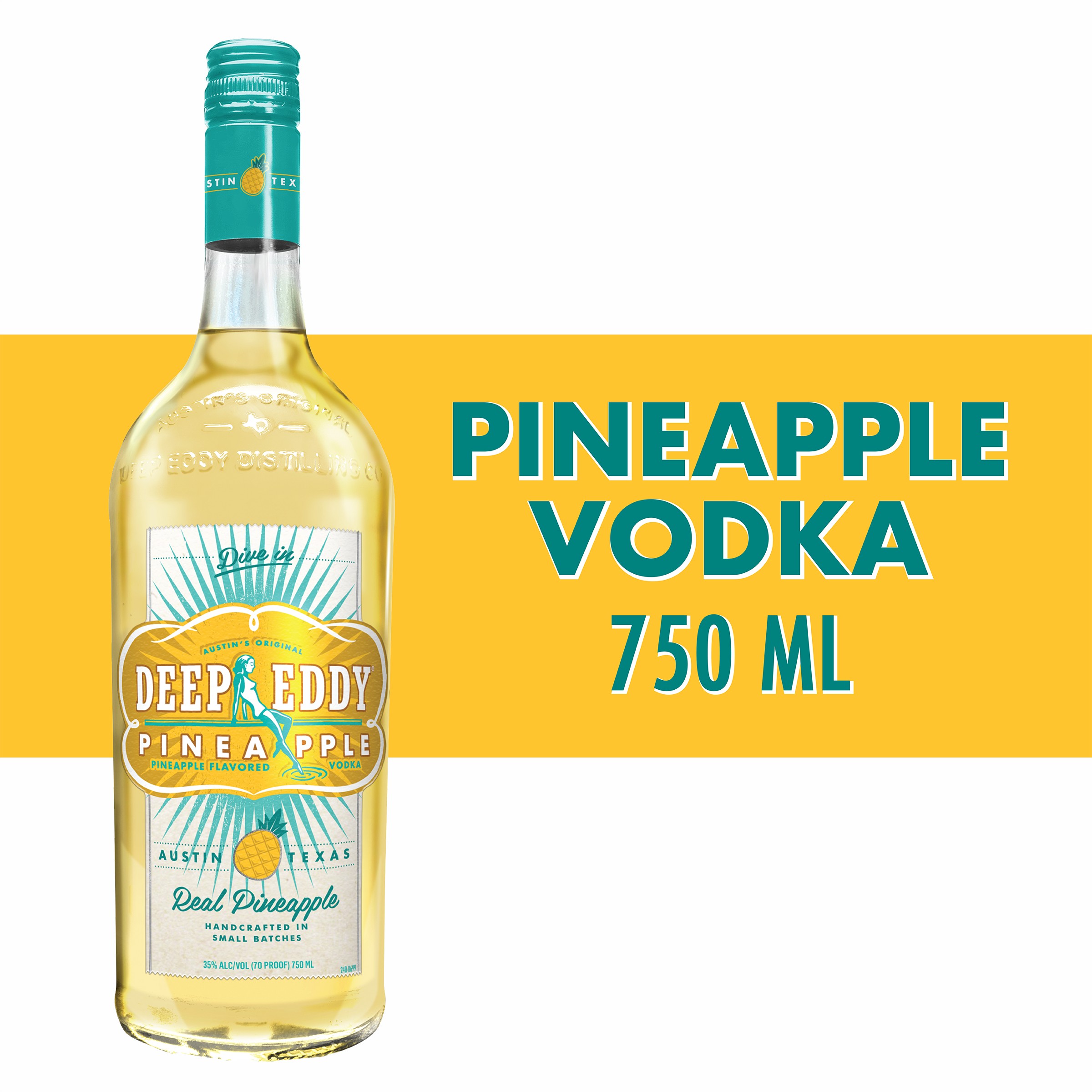 | Long Description | Deep Eddy Pineapple Vodka isn’t just another flavored spirit—it’s bold, juicy, and refreshingly real. Made in Austin with our award-winning Original Vodka—distilled 10 times, filtered 8—and blended with real pineapple juice and a touch of cane sugar, it delivers tropical flavor without artificial additives. Naturally gluten free and crafted in small batches, it’s smooth, vibrant, and easy to enjoy. Mix it with soda, lime, coconut water, or frozen cocktails, or sip it simply over ice. From poolside hangs and backyard parties to casual nights in, Deep Eddy Pineapple brings sunshine, good vibes, and real flavor to every glass. Cheers to real fruit, real fun, and real good times. |