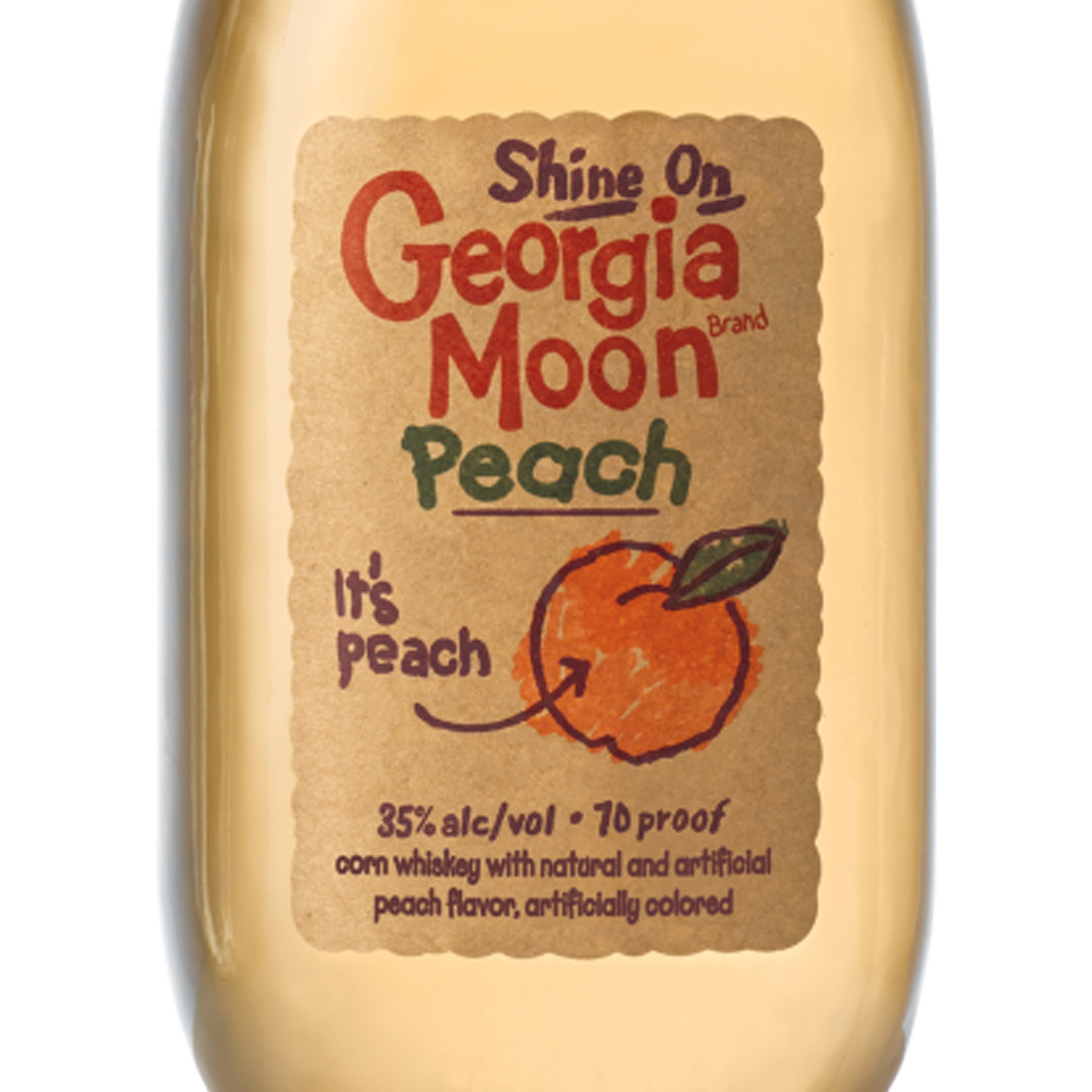 | Long Description | Georgia Moon Peach Corn Whiskey brings ripe, juicy peach flavor to the bold, grain-forward base of corn whiskey for a pour that’s both smooth and lively. Sweet but not overly sugary, it delivers bright stone fruit flavor with just enough whiskey bite to keep things interesting. Great served over ice, chilled, or mixed into easygoing drinks like lemonade, iced tea, or peach punch. Whether you’re relaxing on the porch, firing up the grill, or just looking to add a Southern twist to your cocktail lineup, Georgia Moon Peach is the kind of whiskey that’s made to mix, sip, and enjoy. No pretense—just flavor. Think wisely. Drink wisely. Must be 21+ to enjoy. |