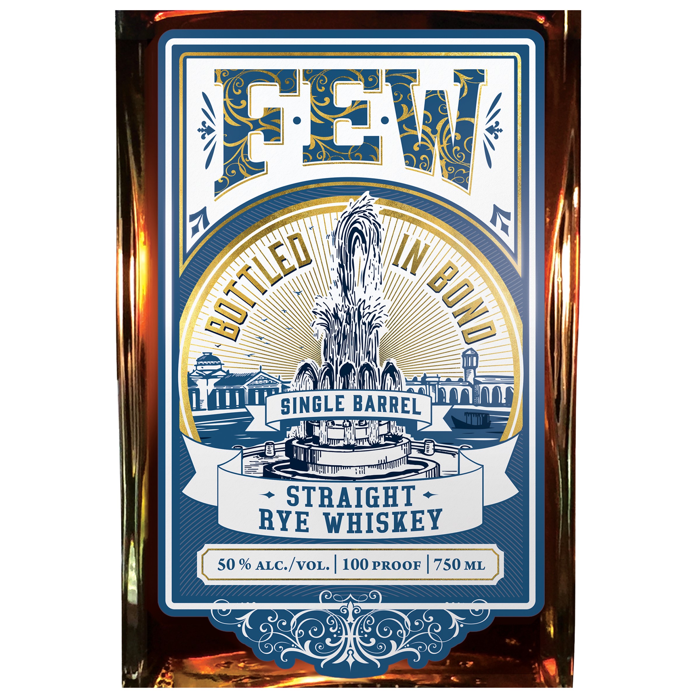 FEW grain-to-glass Rye recipe with a mashbill of 70% rye, 20% corn, 10% malted barley and aged for a minimum of 4 years, in new, charred American Oak barrels and proofed to 50% abv and bottled under the guidelines of US Bottled in Bond act of 1897.
