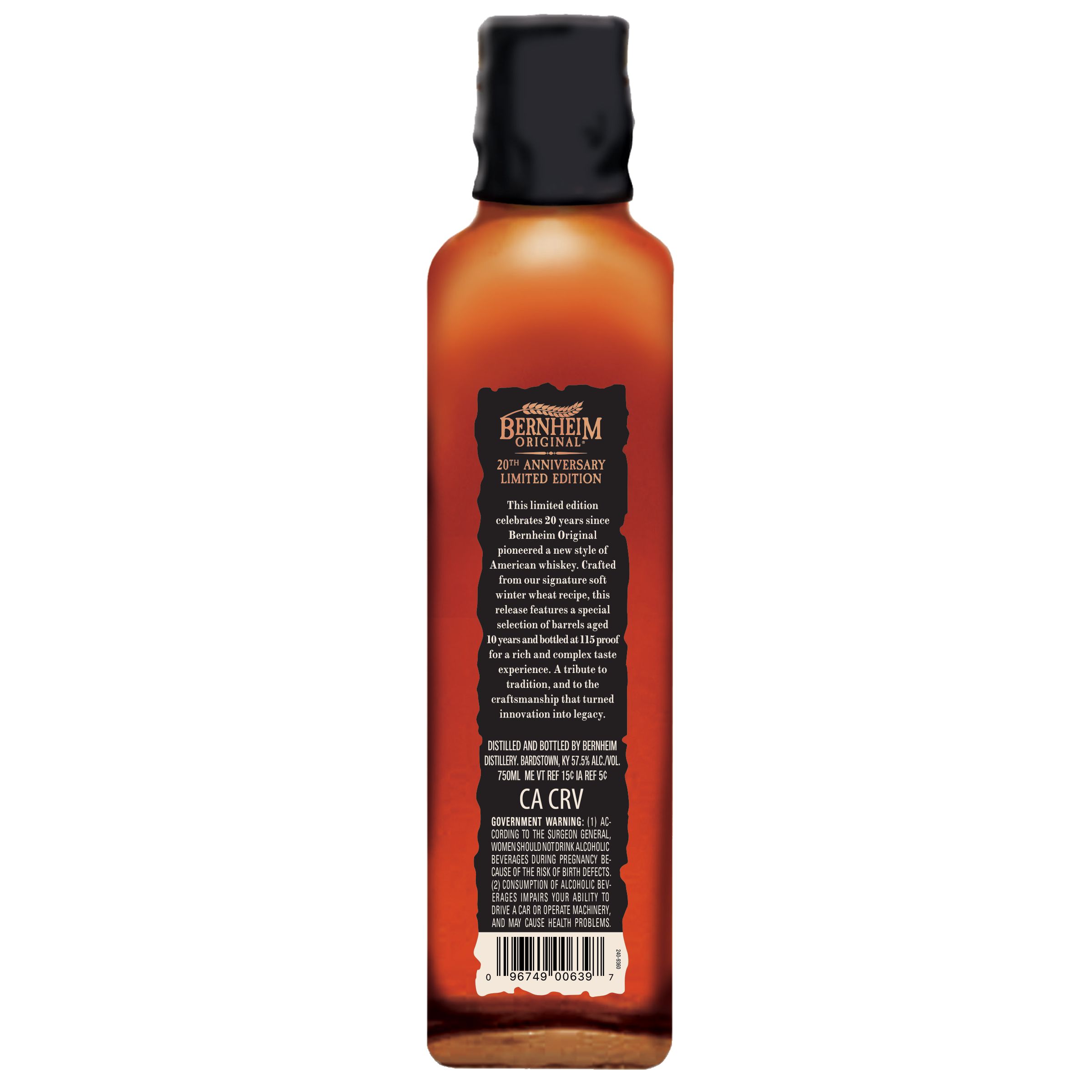 | Brand Story | This limited edition of Bernheim Kentucky Straight Wheat Whiskey celebrates the brand’s 20th anniversary. Aged 10 years and bottled at a robust 115 proof, this commemorative special release honors the legacy of the original Bernheim with rich, mature character and depth. This product also features special throwback packaging inspired by the original bottle, making it a collectible nod to the past while showcasing the continued craftsmanship of the brand today. |