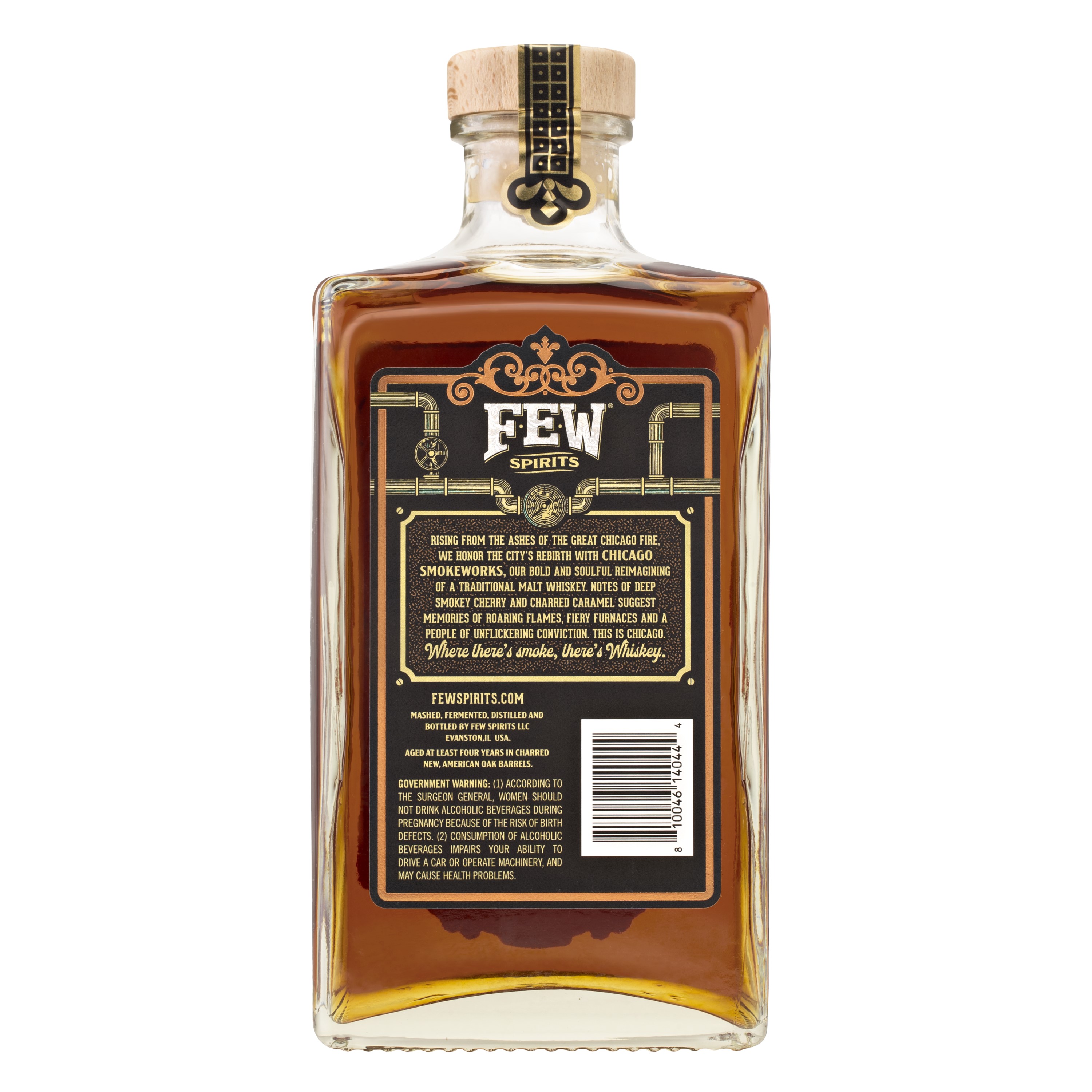 | Long Description | Rising from the ashes of The Great Chicago Fire, we honor the city’s rebirth with FEW Chicago Smokeworks Whiskey, our bold and soulful reimagining of a traditional malt whiskey. FEW Chicago Smokeworks is an American malt whiskey, smoked with cherrywood for a rich and complex whiskey that is bursting with flavor. Notes of deep smokey cherry and charred caramel suggest memories of roaring flames and fiery furnaces. Full of character, Chicago Smokeworks is the perfect complement to your favorite pastimes. This is a rich, chewy whiskey with hints of smoke, sweetness, caramel, and smoked meat barbecue. It’s a drinking experience tailored for a backyard barbeque or pregame tailgate. This is Chicago. Where there’s smoke there’s whiskey. |