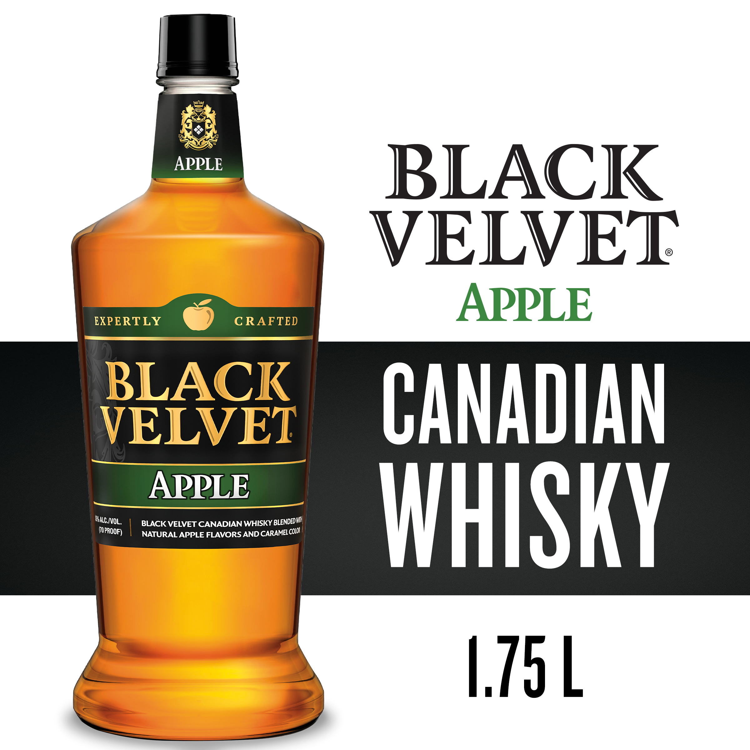 | Long Description | Black Velvet Apple is the perfect blend of original Black Velvet Canadian Whisky and natural apple flavors. At 70 proof, it delivers a smooth, balanced, and distinctly delicious apple taste with a bright, crisp finish. Enjoy Black Velvet Apple neat, on the rocks, with a mixer, or in a delicious cocktail. Black Velvet first came out of the barrel in 1951 and has grown to become the second largest Canadian Whisky in the world. The brand was initially known as “Black Label,” but after Jack Napier, the original distiller, sampled the first batch, he changed the name to Black Velvet to reflect its uncommon velvety taste and smoothness. Using crystal clear Canadian water, plus the finest rye, grains, and corn, the whisky is painstakingly distilled, Blended at Birth™, and put up in premium oak barrels to gently mature. |