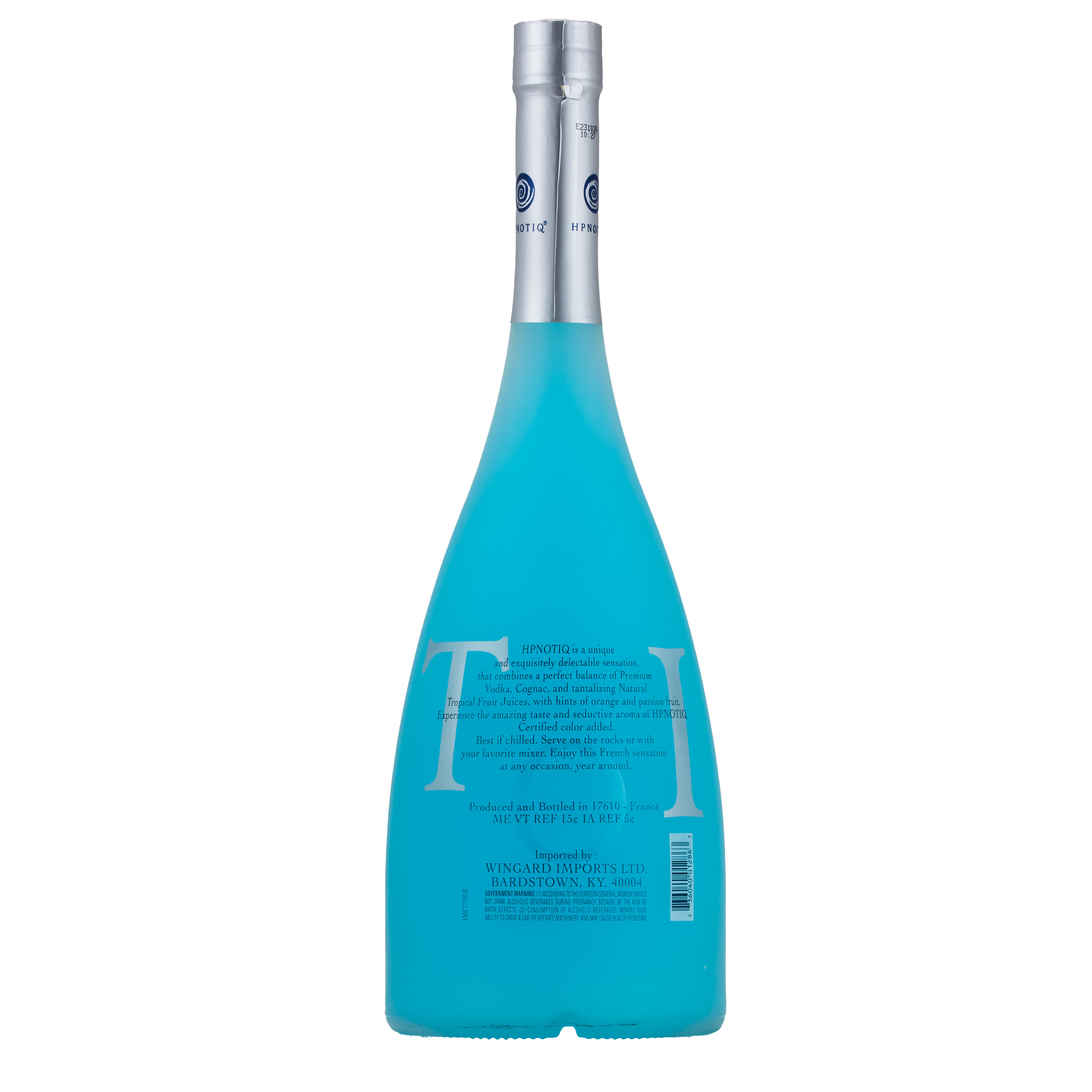 | Long Description | Produced & bottled in France, HPNOTIQ is a blend of natural, exotic fruit juices, premium vodka and a touch of cognac and can be served mixed with premium spirits such as cognac, rum, vodka, or champagne. Hpnotiq has remained the 2nd largest fruit based liqueur. Hpnotiq is the perfect storm of captivating flavor, eye-catching blue color and stylish packaging.