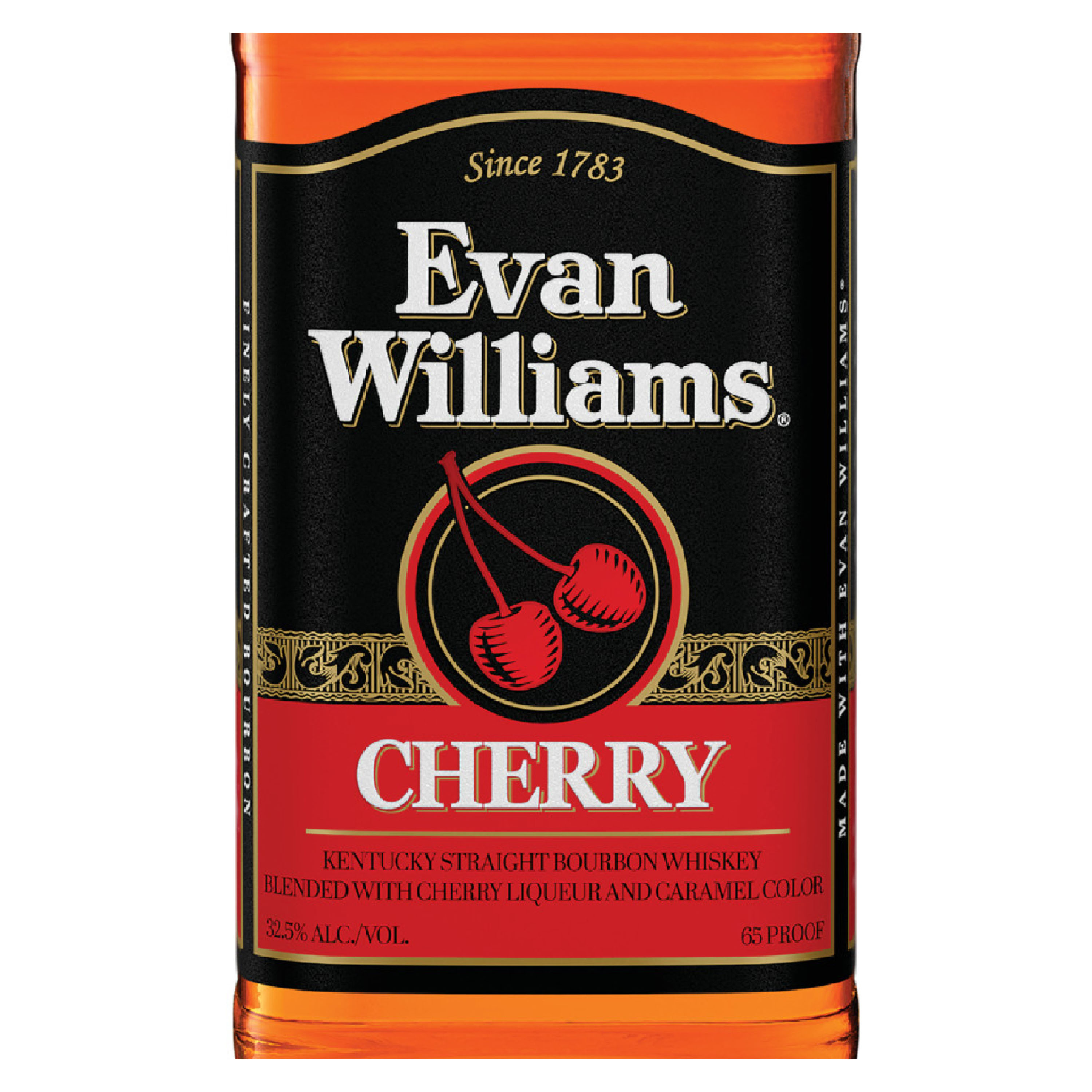 | Long Description | Smooth bourbon, cherry zing. Evan Williams Cherry combines maraschino cherries with Evan Williams Bourbon, the #2 selling Kentucky Straight Bourbon whiskey in the world, to create a sweet, delicious spirit. It has a pale amber color with rich notes of cherry tarts, vanilla and ground almond. With a taste of plum and cherry sweetness, then caramel notes with a juicy, fruity finish with soft spices. Evan Williams Cherry is bottled at 65 proof and is very versatile and can be enjoyed as a chilled shot, neat or mixed to create a refreshing cocktail. A Beverage Information Group Fast Track Brand, it’s a surefire way to up your flavor game. Bring the Flavor with Evan Williams Cherry. |