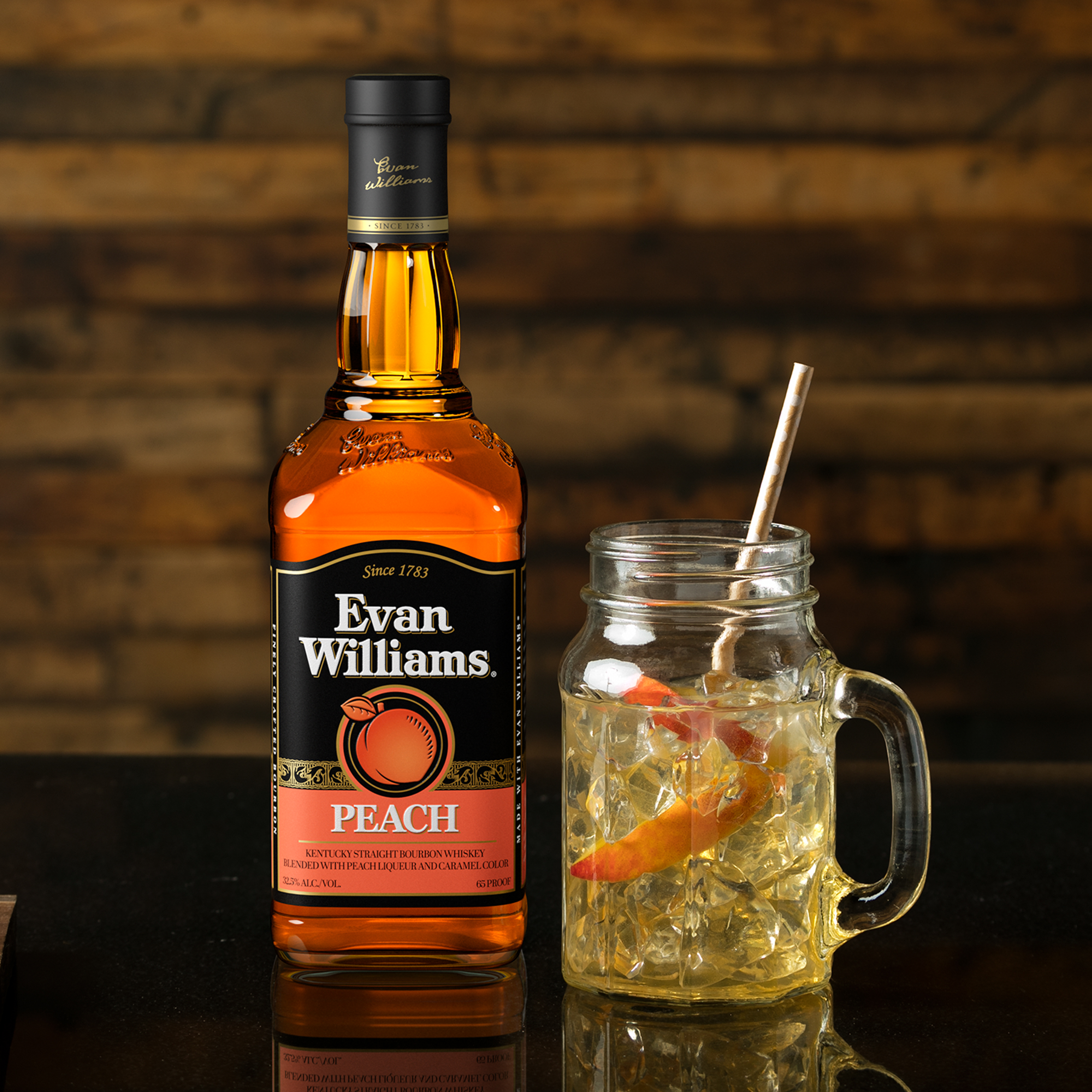 | Feature Bullet | Evan Williams Peach is the right blend of Kentucky Straight Bourbon and sweet, Georgia peaches |