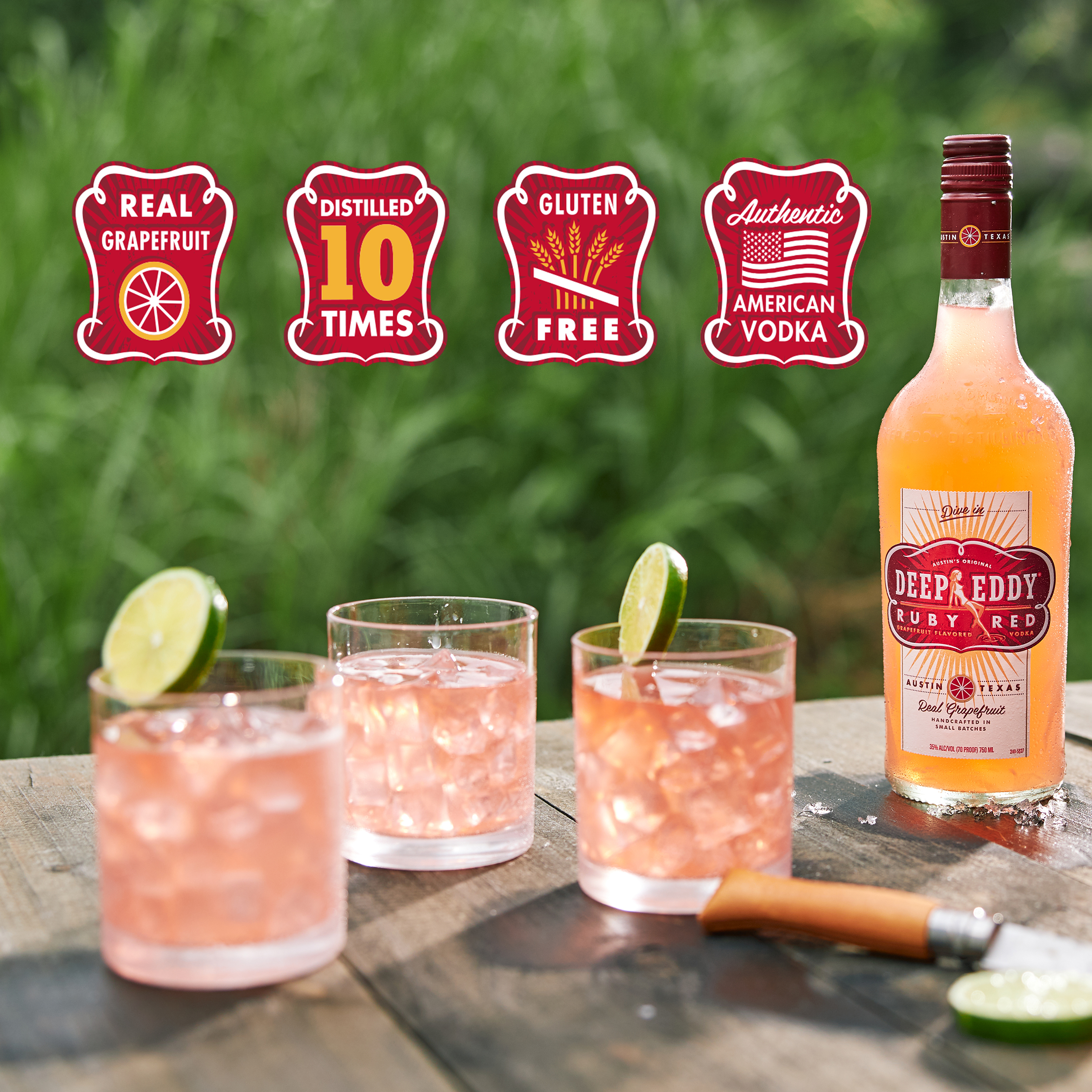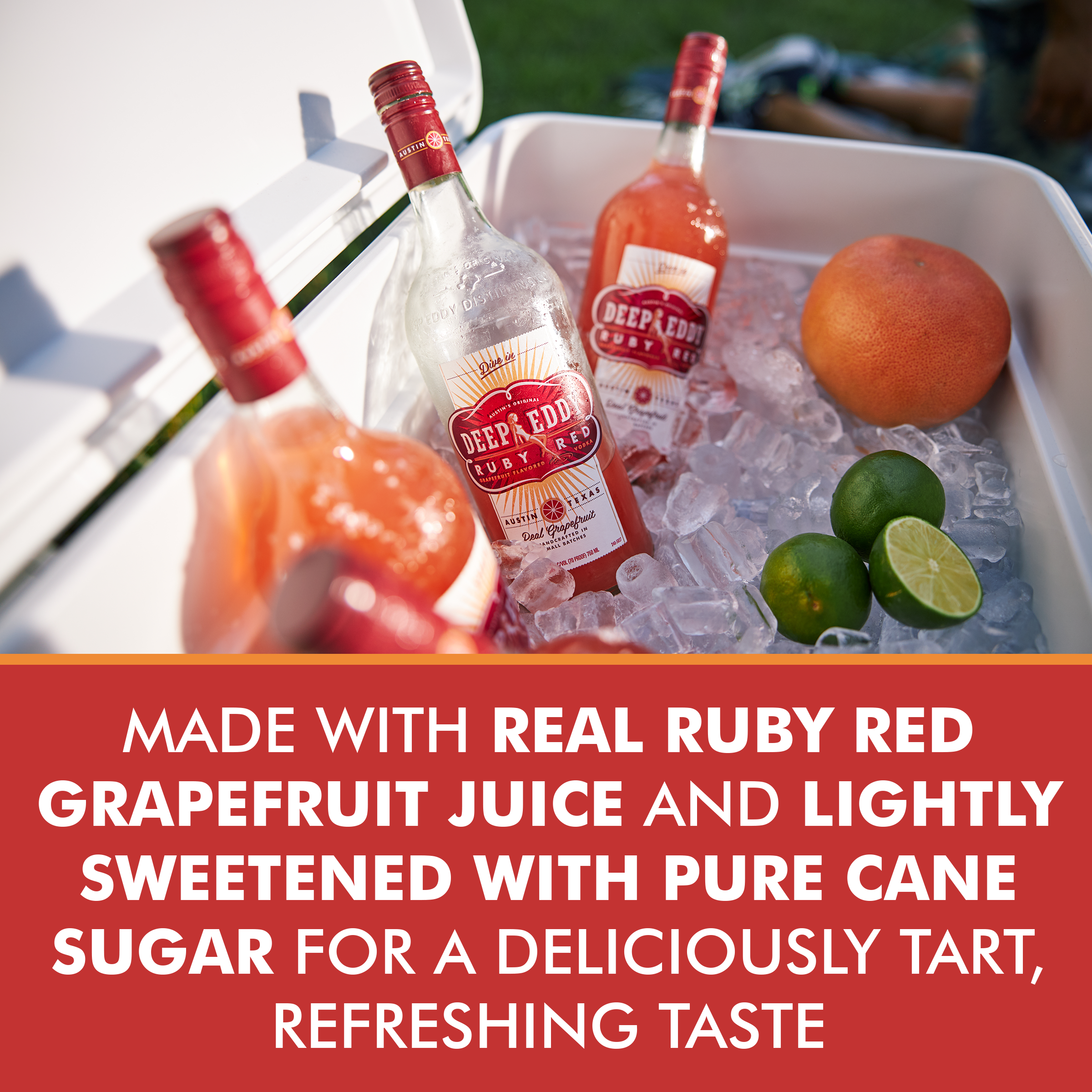 | Long Description | Deep Eddy Ruby Red Grapefruit Vodka isn’t just a flavored spirit—it’s bold, bright, and refreshingly real. Crafted in Austin with our award-winning Original Vodka—distilled 10 times, filtered 8—and infused with real grapefruit juice and a touch of cane sugar, it delivers a crisp, tart-sweet flavor with no artificial additives. Naturally gluten free and handcrafted in small batches, Ruby Red is smooth, vibrant, and versatile—perfect with soda, sparkling water, or in a Paloma. From poolside afternoons to backyard brunches and casual nights in, it’s made for good friends, good music, and good times. Cheers to real fruit, real flavor, and Deep Eddy Ruby Red—refreshingly real and always unforgettable. |