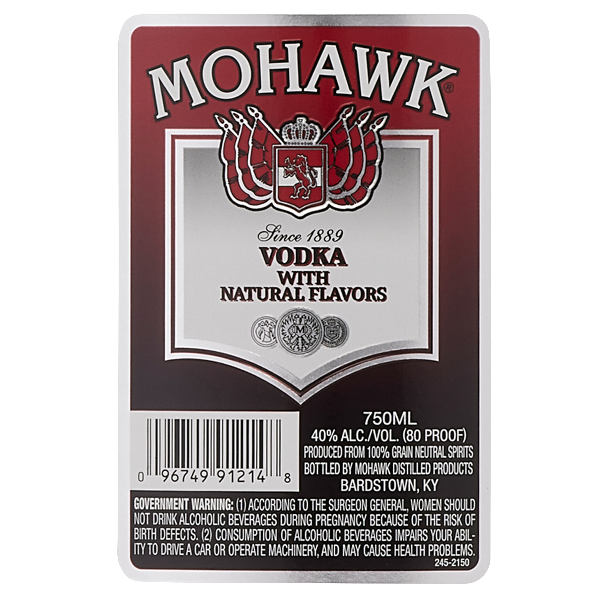 | Long Description | Mohawk Vodka with Natural Flavors is distilled for clarity, smoothness, and dependable mixability—offered in both 80 and 100 proof variations. Its clean, neutral character makes it the ideal base for a wide range of cocktails, from vodka tonics and screwdrivers to lemon drops and simple spritzes. Whether you prefer a lighter touch or a higher-proof pour, Mohawk Vodka delivers quality and versatility in every bottle. It blends effortlessly into party punches, chilled shots, or easy weeknight mixers. As part of the Mohawk family of spirits, it's crafted for reliability, affordability, and flavor that fits any occasion. Think wisely. Drink wisely. Must be 21+ to enjoy. |