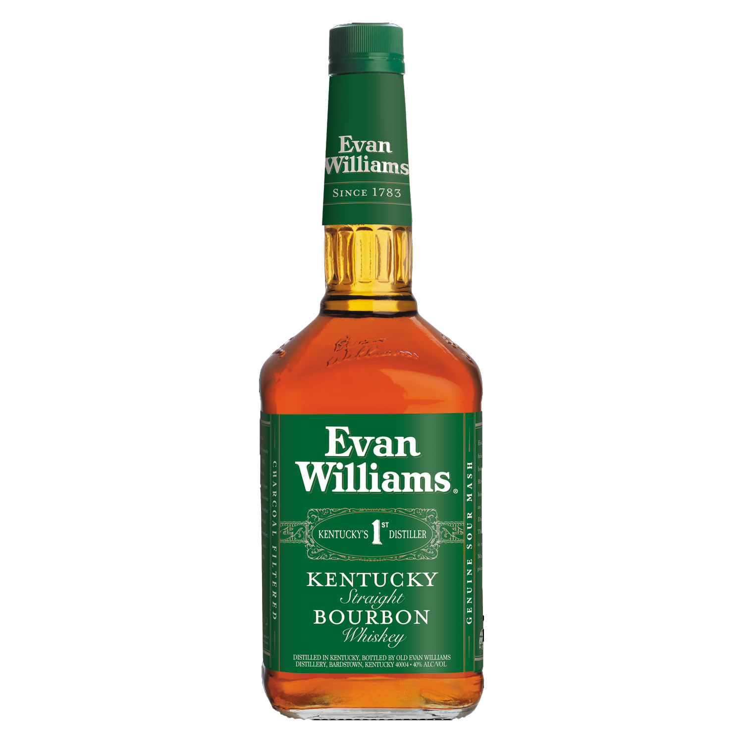 | Long Description | Our Kentucky Straight Bourbon is full of character and simply done right. Evan Williams Green delivers the classic flavor at 80 proof. Named after Evan Williams, who opened Kentucky’s 1st Distillery in 1783 along the banks of the Ohio River. Evan Williams is the #2 selling KY Straight Bourbon brand in the world. Recognized for its great flavor, quality, variety and mixability