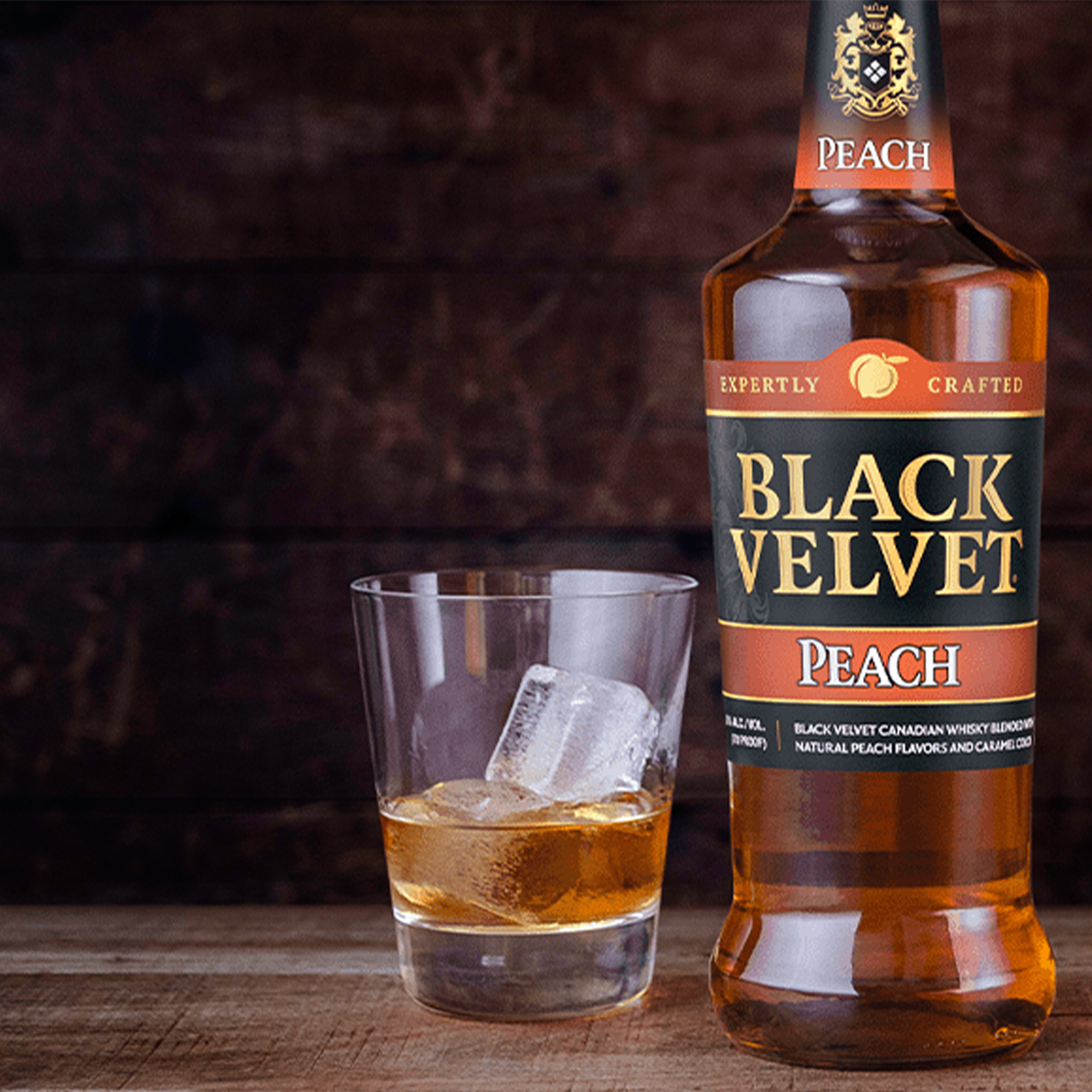 | Taste | Initial burst of fresh, sweet peach, nicely balanced by the distinctive character of Black Velvet Canadian Whisky. |