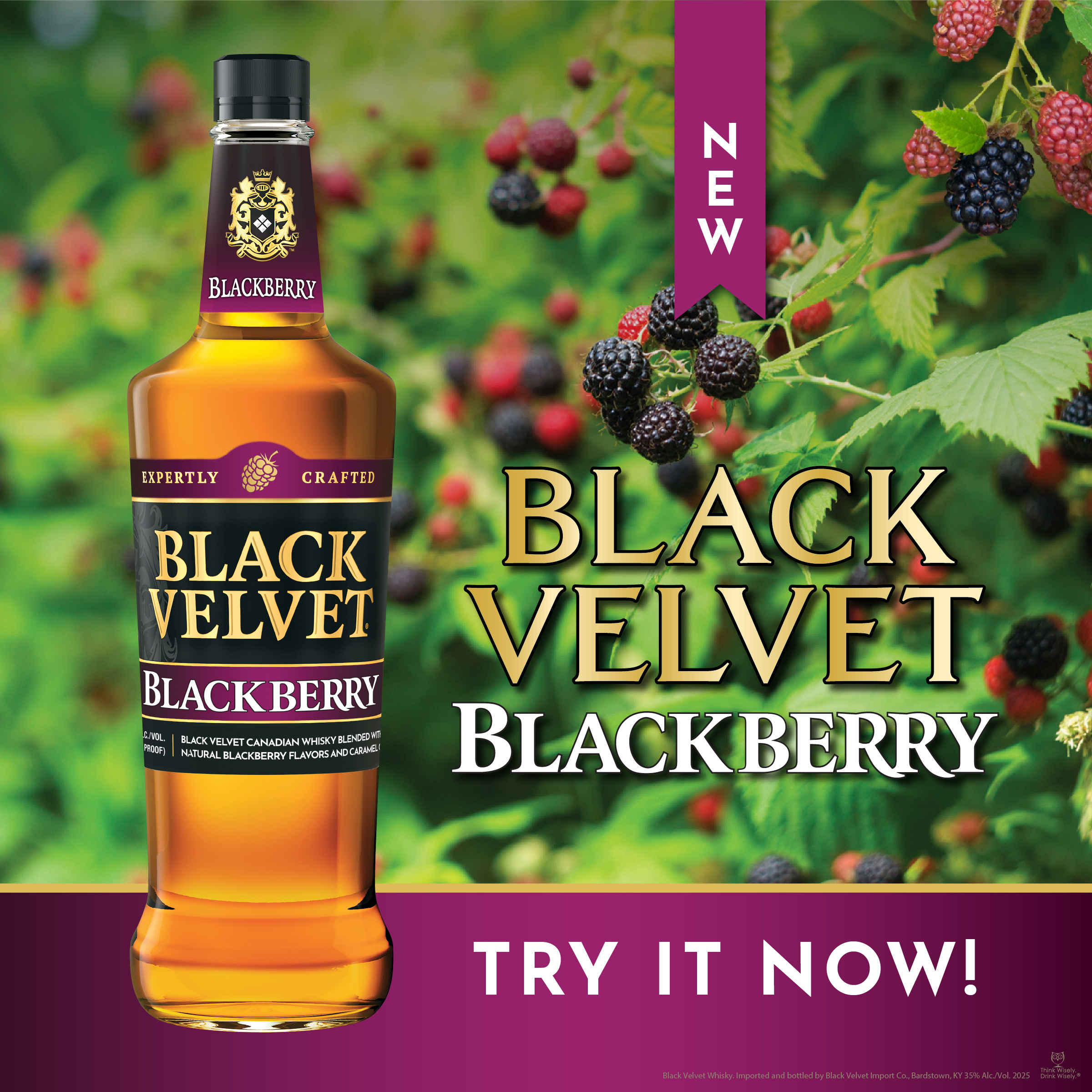 | Long Description | The newest addition to the Black Velvet family is crafted for the adventurous at heart, Black Velvet Blackberry Whisky combines our signature smooth as velvet whisky, with the vibrant, sweet flavor of handpicked blackberries. This extraordinary blend offers a refreshing burst of blackberry sweetness followed by hints of caramel, vanilla, and rye that linger long after the last drop. Perfect on its own, over ice, or as the star ingredient in your favorite cocktail, Black Velvet Blackberry Whisky is the perfect drink for any occasion—whether you're unwinding after a long day, celebrating a special moment, or just exploring new tastes with friends. |