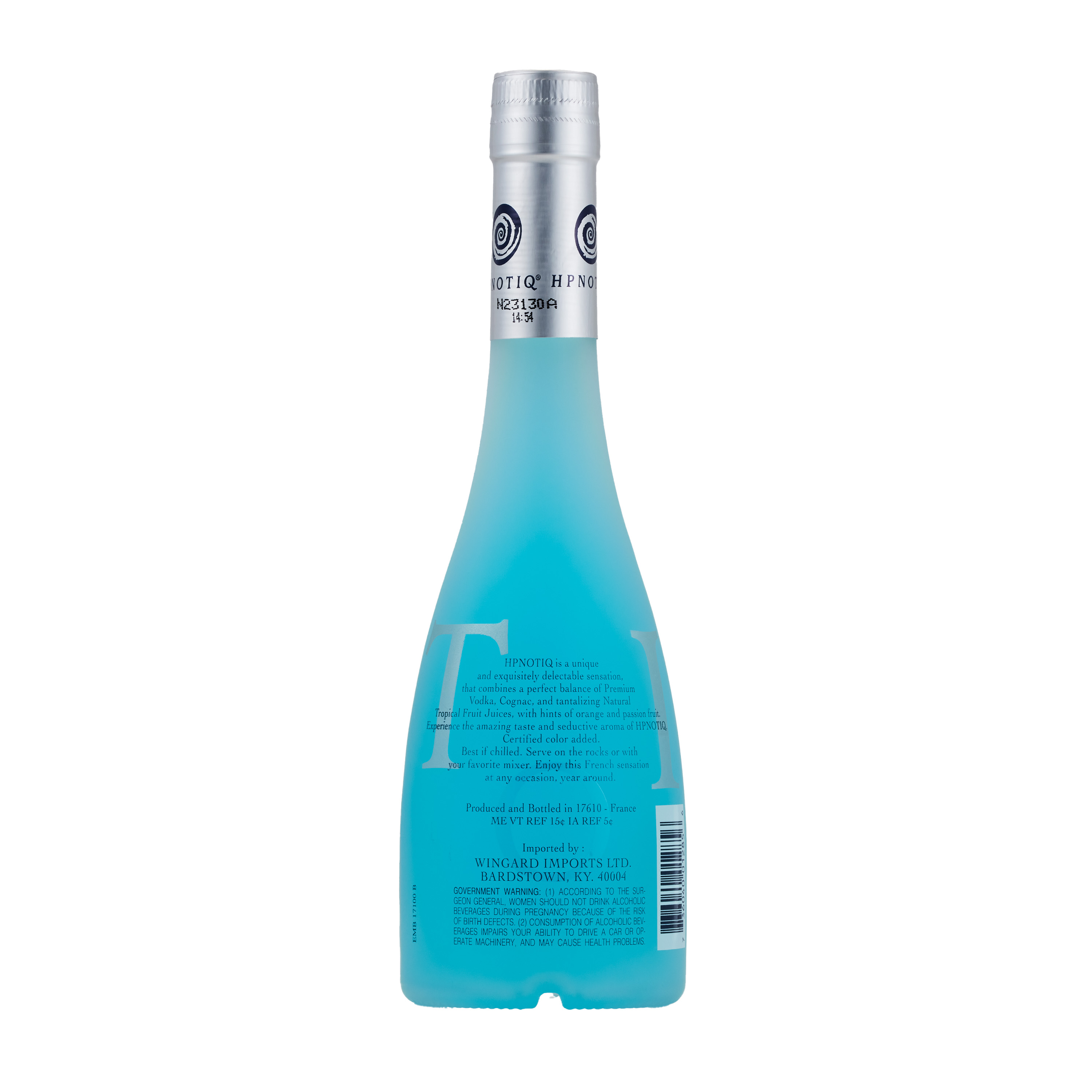 | Long Description | Produced & bottled in France, HPNOTIQ is a blend of natural, exotic fruit juices, premium vodka and a touch of cognac and can be served mixed with premium spirits such as cognac, rum, vodka, or champagne. Hpnotiq has remained the 2nd largest fruit based liqueur. Hpnotiq is the perfect storm of captivating flavor, eye-catching blue color and stylish packaging.