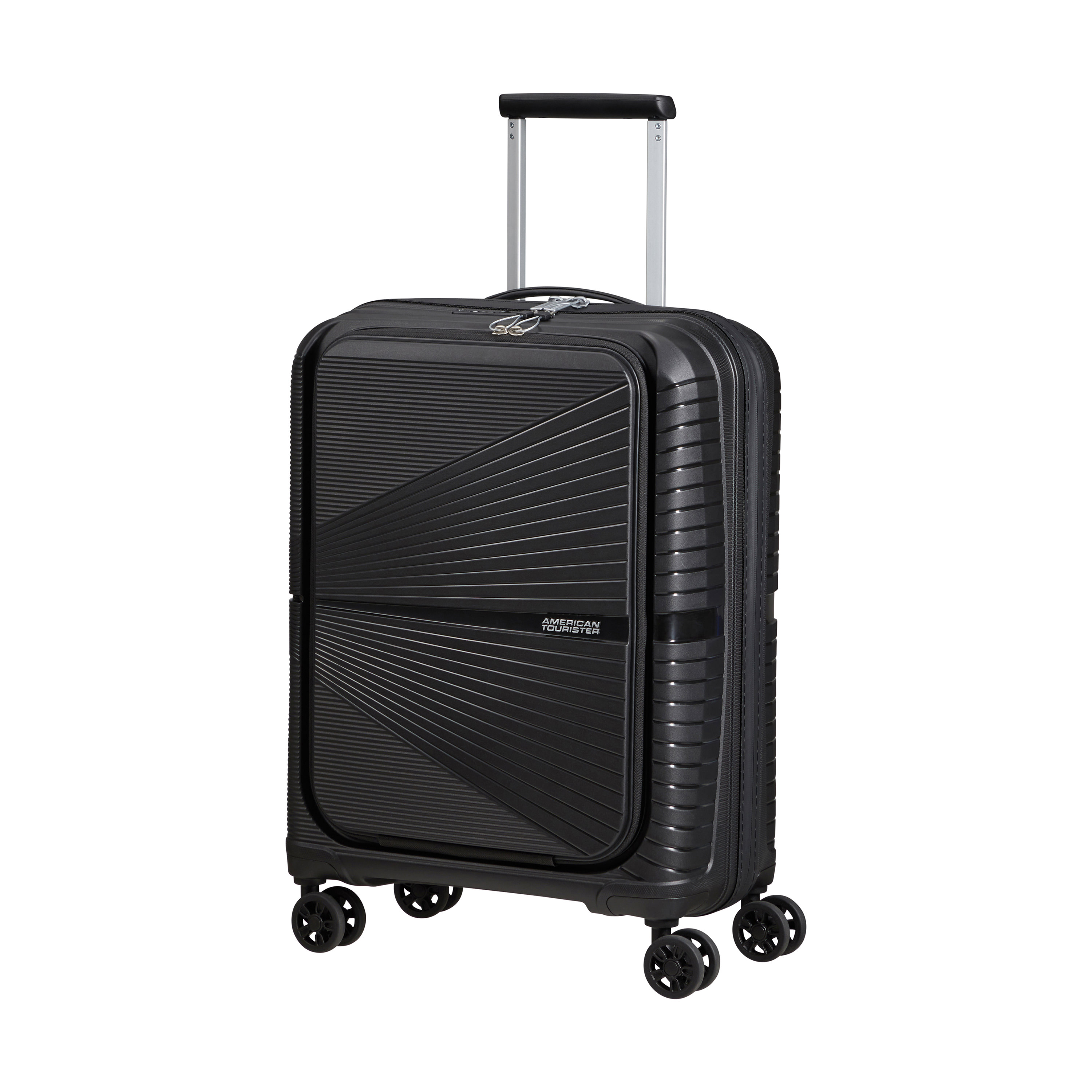 Brand American Tourister Collection Airconic Product ID 134657-0581 Product Name Spinner Frontload Carry-On™ EAN/UPC 049845310189 Construction HARDSIDE Colour Onyx Black Material Constructed of 100% polypropylene offering extreme durability with a texture that reduces the visibility of scratches. Warranty 10 Years Feature • Constructed of 100% polypropylene offering extreme durability with a texture that reduces the visibility of scratches. • Dual Spinner wheels make it easy to navigate narrow airplane aisles as well as over a variety of surfaces. • Padded laptop pocket for extra protection. Fits most 15.6" laptops. • USB port* provides easy connection to USB accessories for convenient, on-the-go charging. *Battery not included. • Meets most Carry-On* requirements. *Carry-On size and weight allowances vary by airline Overall Depth/Length (in) 15.5 Overall Width (in) 9 Overall Height (in) 21.5 Packing Depth/Length (in) 15.1 Packing Width (in) 8.8 Packing Height (in) 18.7 Weight (lb) 5.3 Capacity (litres) 41