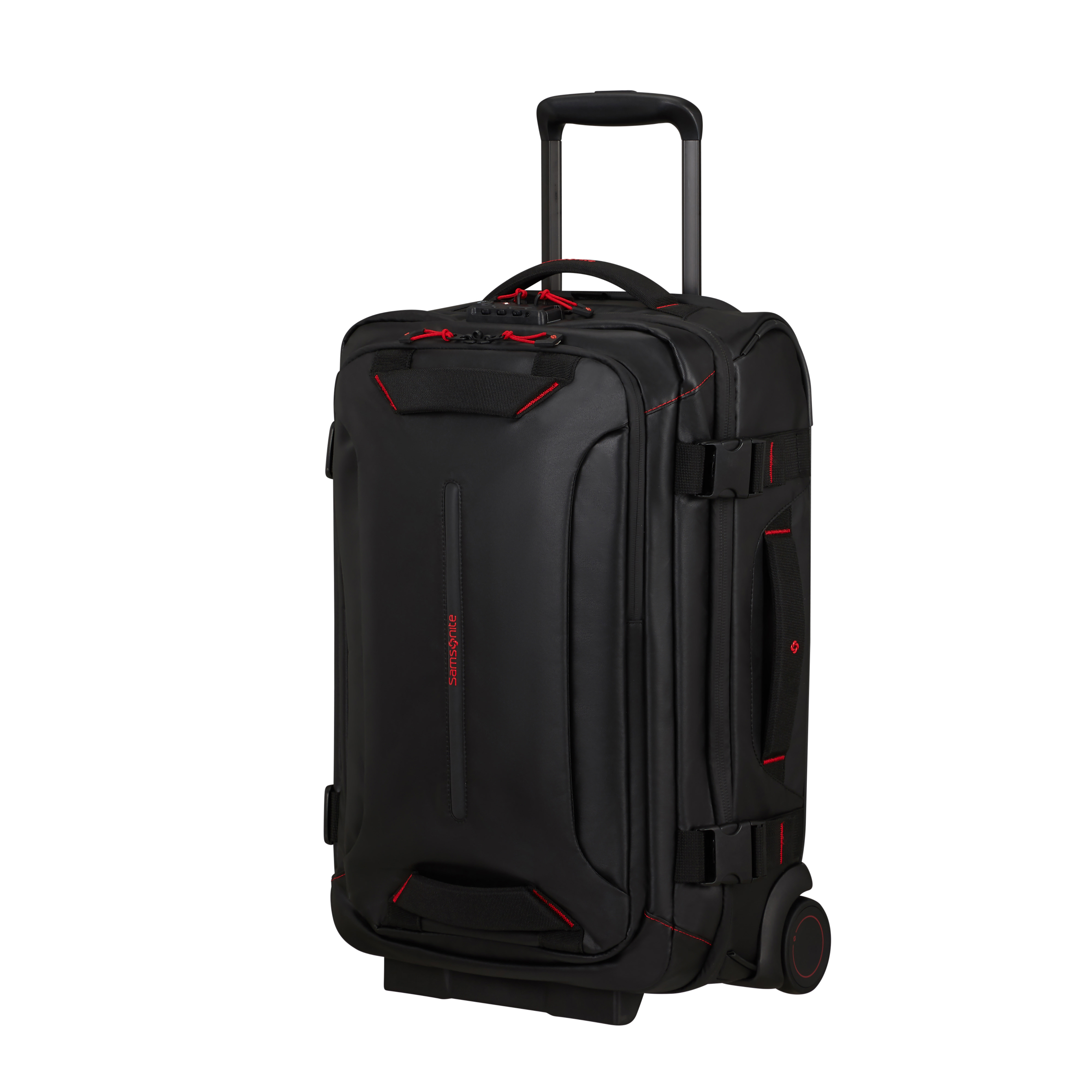 Brand Samsonite Collection Ecodiver Product ID 140881-1041 Product Name 21.5" Wheeled Duffle EAN/UPC 043202986543 Construction SOFTSIDE Colour Black Warranty 5 Years Feature • All Ecodiver items have a coated water-resistant fabric. By laminating under vacuum, the products were made water and abrasion resistant. • Interior & exterior fabrics were made from Recyclex®, a material created using 100% post-consumer recycled PET plastic. • Mounted TSA-approved lock provides added security for your belongings. • Padded laptop pocket for extra protection. Fits most 15.6" laptops. • Meets most Carry-On* requirements. *Carry-On size and weight allowances vary by airline Overall Depth/Length (in) 13.8 Overall Width (in) 9 Overall Height (in) 21.5 Packing Depth/Length (in) 13.8 Packing Width (in) 9 Packing Height (in) 21.5 Weight (lb) 5.3 Capacity (litres) 40