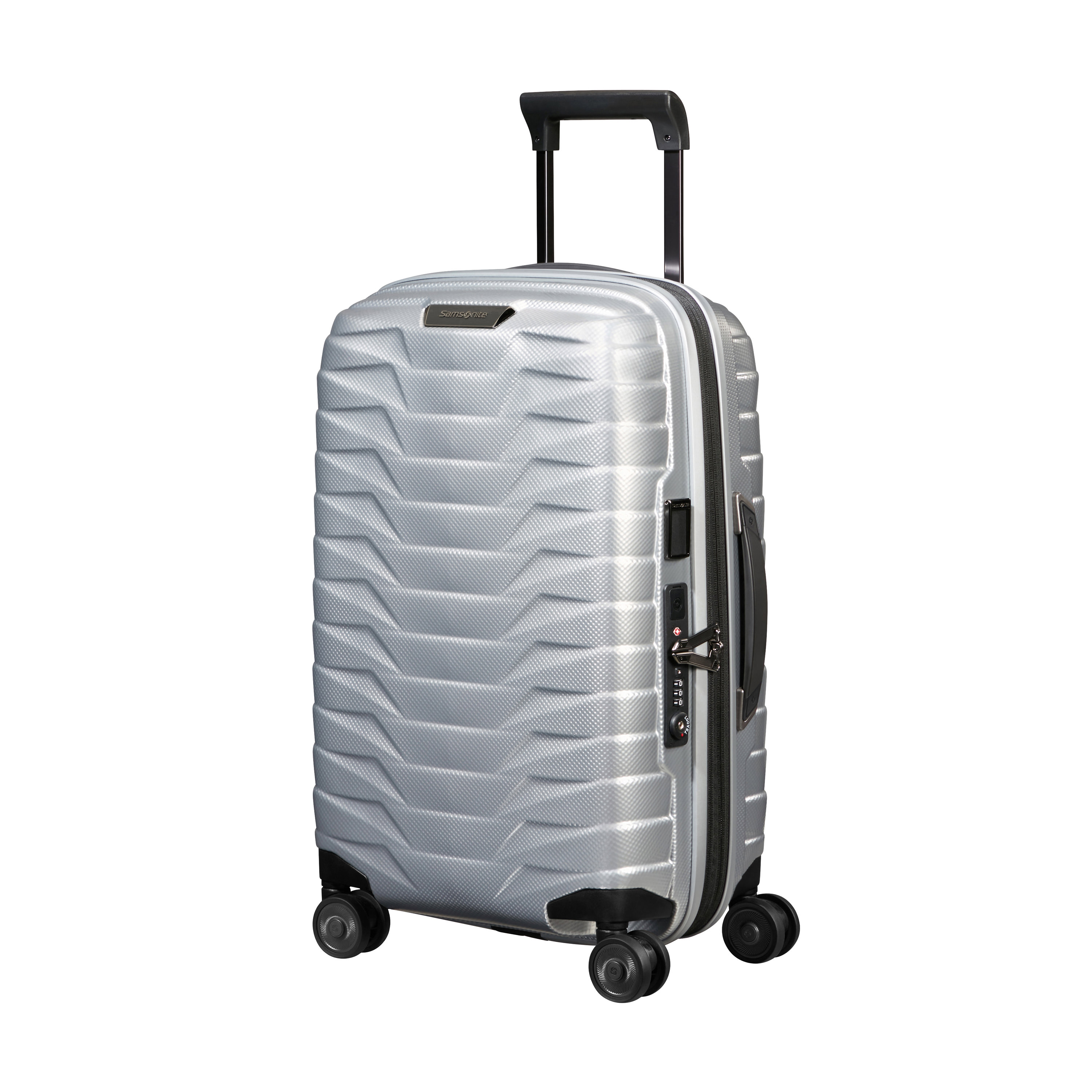Brand Samsonite Collection Proxis Product ID 141845-1776 Product Name Spinner Carry-On™ EAN/UPC 043202949722 Construction HARDSIDE Colour Silver Warranty 10 Years Feature • Roxkin™ shell - an innovative material that bounces back into shape easily and is highly resilient in resisting shocks. • Recessed TSA-approved lock provides added security for your belongings. • Dual divider panels - one on each side. • Expandability - Extra expansion on the case allows you to easily pack all your belongings. • USB port + battery pocket. *Battery not included. Overall Depth/Length (in) 21.5 Overall Width (in) 8.2 Overall Height (in) 14.5 Packing Depth/Length (in) 20.5 Packing Width (in) 7.7 Packing Height (in) 14 Weight (lb) 4.62970750578 Capacity (litres) 36.2137727336