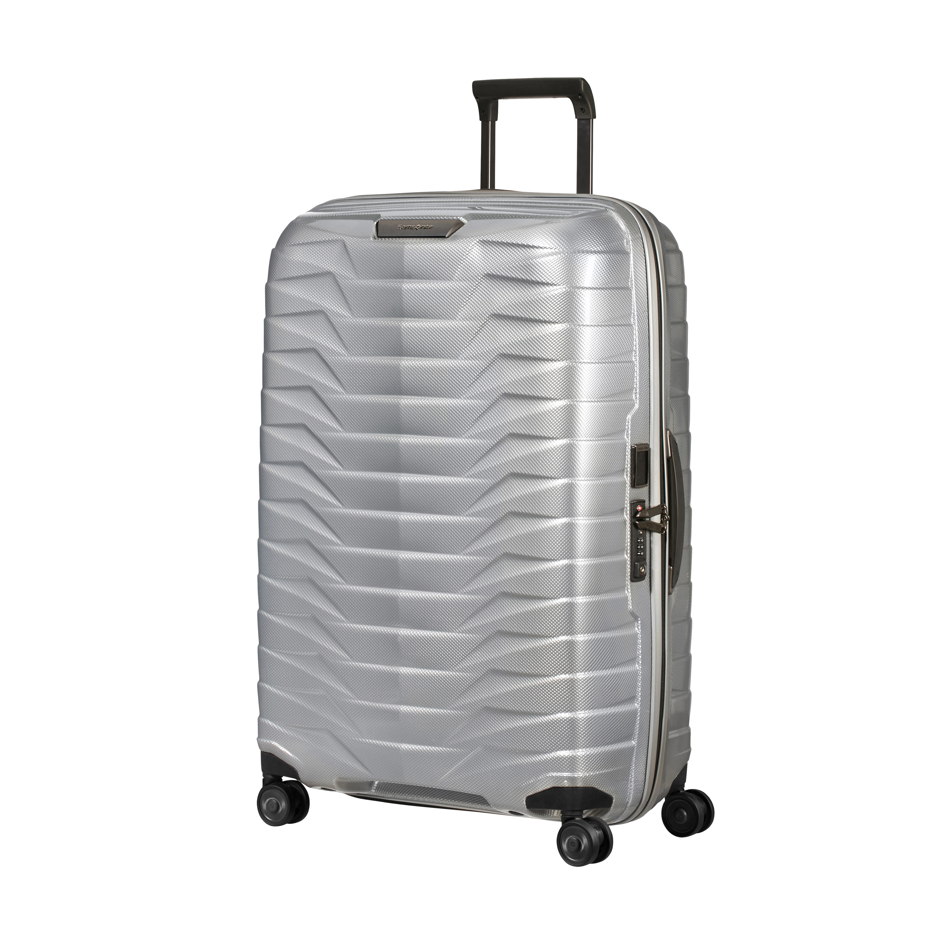 Brand Samsonite Collection Proxis Product ID 141847-1776 Product Name Spinner Large (28) EAN/UPC 043202949807 Construction HARDSIDE Colour Silver Warranty 10 Years Feature • Roxkin™ shell - an innovative material that bounces back into shape easily and is highly resilient in resisting shocks. • Recessed TSA-approved lock provides added security for your belongings. • Dual Spinner wheels create a balanced and smooth rolling experience on any surface. • Dual divider panels - one on each side. • U-shaped mesh pocket for organized packing. Overall Depth/Length (in) 29.7 Overall Width (in) 11 Overall Height (in) 20 Packing Depth/Length (in) 28 Packing Width (in) 10.3 Packing Height (in) 19.3 Weight (lb) 6.6138678654 Capacity (litres) 91.21236467168004