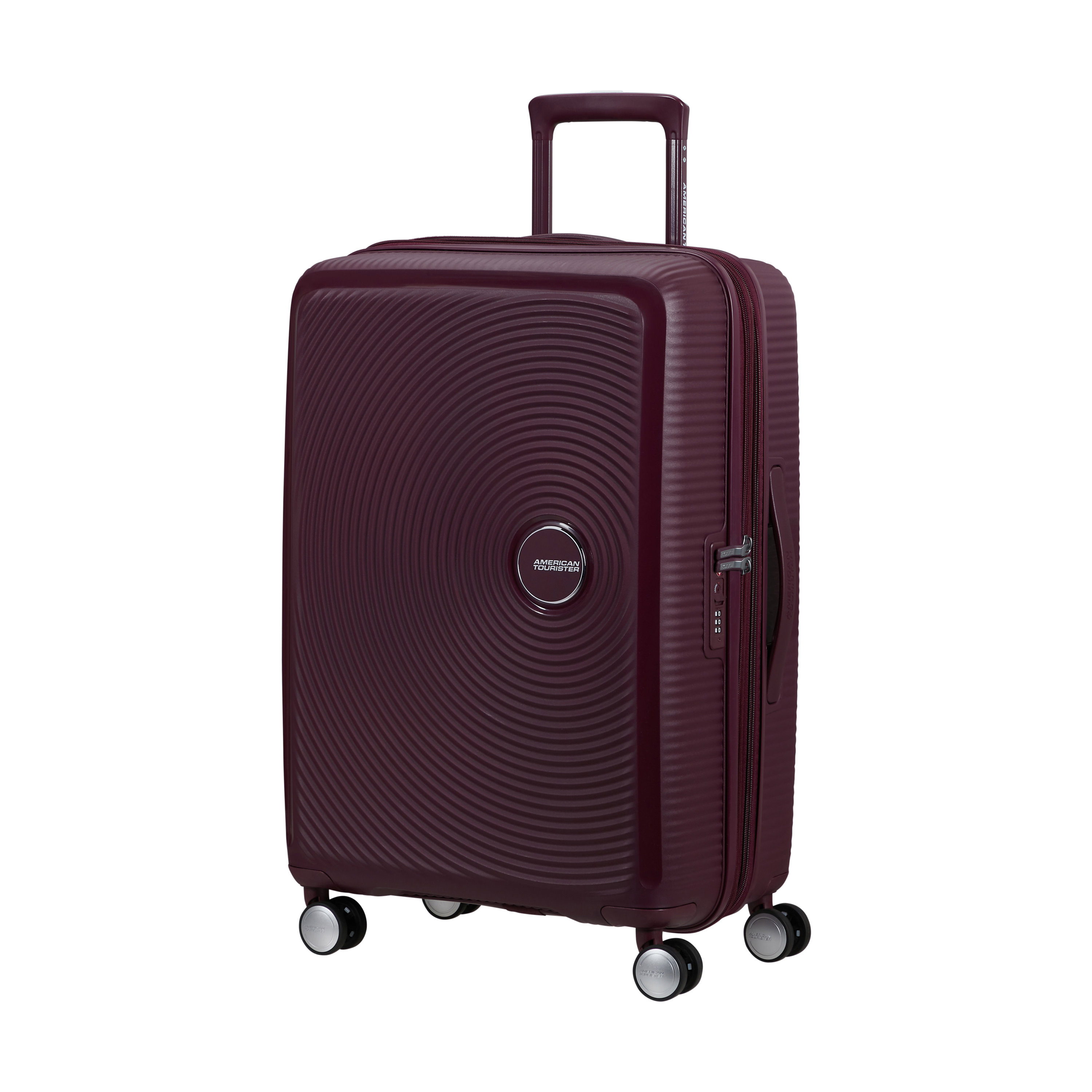 Brand American Tourister Collection Curio Product ID 143103-T505 Product Name Spinner Medium EAN/UPC 049845354633 Construction HARDSIDE Colour Wild Cherry Warranty 10 Years Feature • Integrated TSA-approved lock provides added security when checking in your luggage. • Expandability - Extra expansion on the case allows you to easily pack all your belongings. • Dual Spinner wheels create a balanced and smooth rolling experience on any surface. • Constructed of 100% polypropylene offering extreme durability with a texture that reduces the visibility of scratches. • Retracting top and side carry-handles stay close to the case to protect against damage. Overall Depth/Length (in) 18.4 Overall Width (in) 10.8 Overall Height (in) 26.3 Packing Depth/Length (in) 17.3 Packing Width (in) 10.4 Packing Height (in) 23.5 Weight (lb) 7.9 Capacity (litres) 69