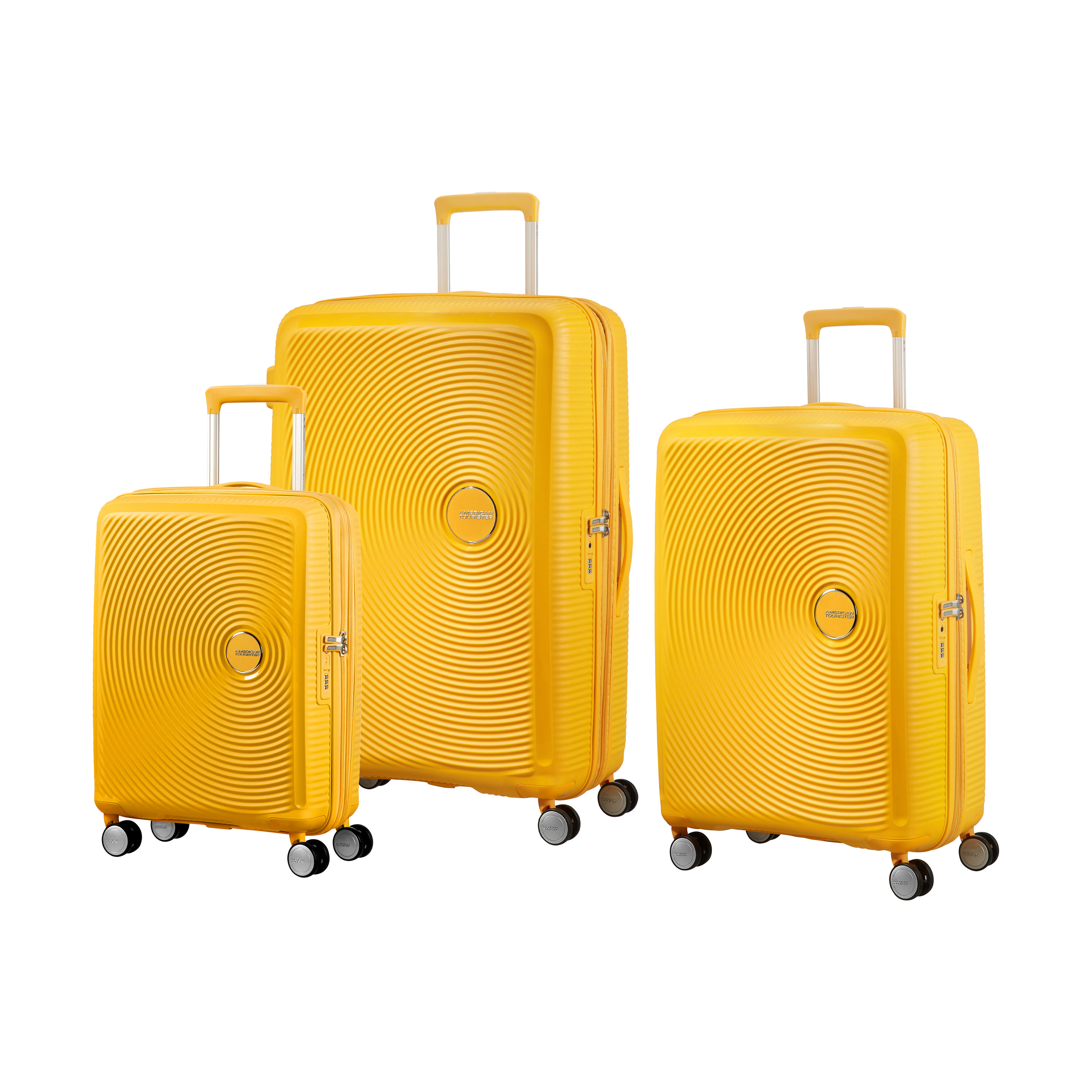 Brand American Tourister Collection Curio Product ID 143105-1371 Product Name Spinner 3 Piece Set EAN/UPC 049845314590 Construction HARDSIDE Colour Golden Yellow Warranty 10 Years Feature • Integrated TSA-approved lock provides added security when checking in your luggage. • Expandability - Extra expansion on the case allows you to easily pack all your belongings. • Dual Spinner wheels create a balanced and smooth rolling experience on any surface. • Constructed of 100% polypropylene offering extreme durability with a texture that reduces the visibility of scratches. • Meets most Carry-On* requirements. *Carry-On size and weight allowances vary by airline Overall Depth/Length (in) 20.2 Overall Width (in) 11.3 Overall Height (in) 30.2 Packing Depth/Length (in) 19 Packing Width (in) 10.6 Packing Height (in) 27.3 Weight (lb) 23.6 Capacity (litres) 90