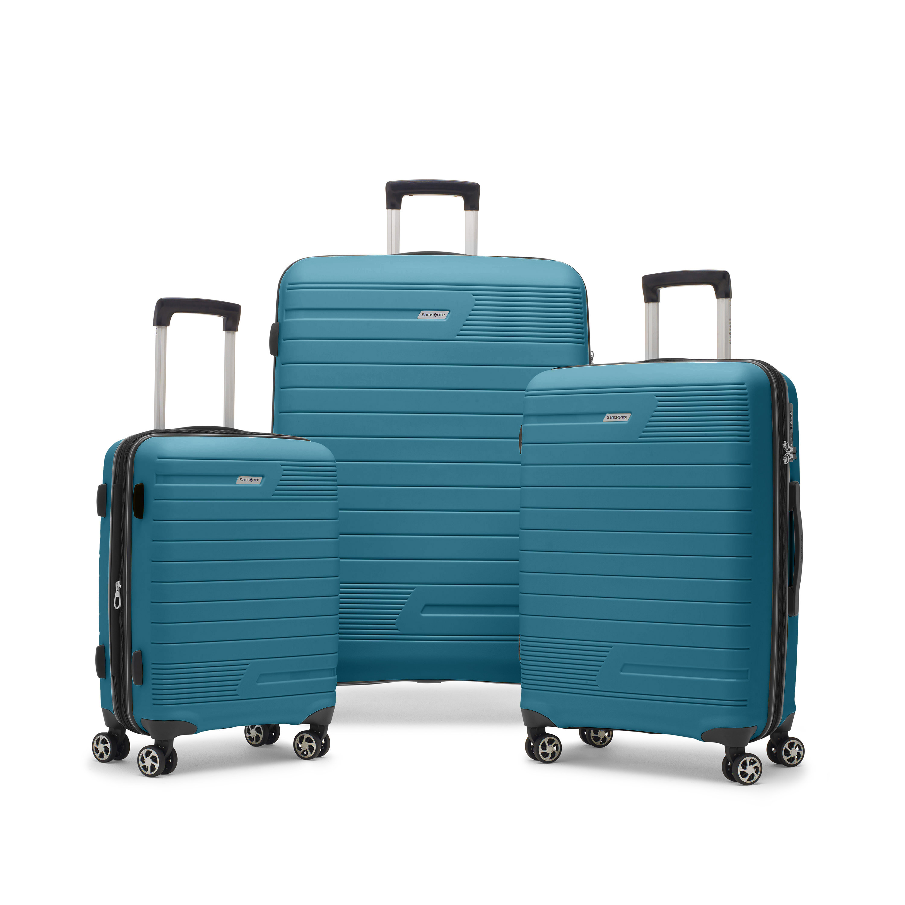 Brand Samsonite Collection Sirocco Product ID 147754-1855 Product Name 3 Piece Set EAN/UPC 840359625314 Construction HARDSIDE Colour Teal Blue Material Constructed of 100% polypropylene offering extreme durability with a texture that reduces the visibility of scratches. Warranty 10 Years Feature • Constructed of 100% polypropylene offering extreme durability with a texture that reduces the visibility of scratches. • The lining of this product was made from rPET fabric, made from plastic bottles used by consumers. • Expandability - Extra expansion on the case allows you to easily pack all your belongings. • Integrated TSA-approved lock provides added security when checking in your luggage. • Divider panel and cross-straps help secure your belongings. Overall Depth/Length (in) 20.8 Overall Width (in) 11.8 Overall Height (in) 30.5 Packing Depth/Length (in) 19.8 Packing Width (in) 11 Packing Height (in) 27 Weight (lb) 25.1 Capacity (litres) 96