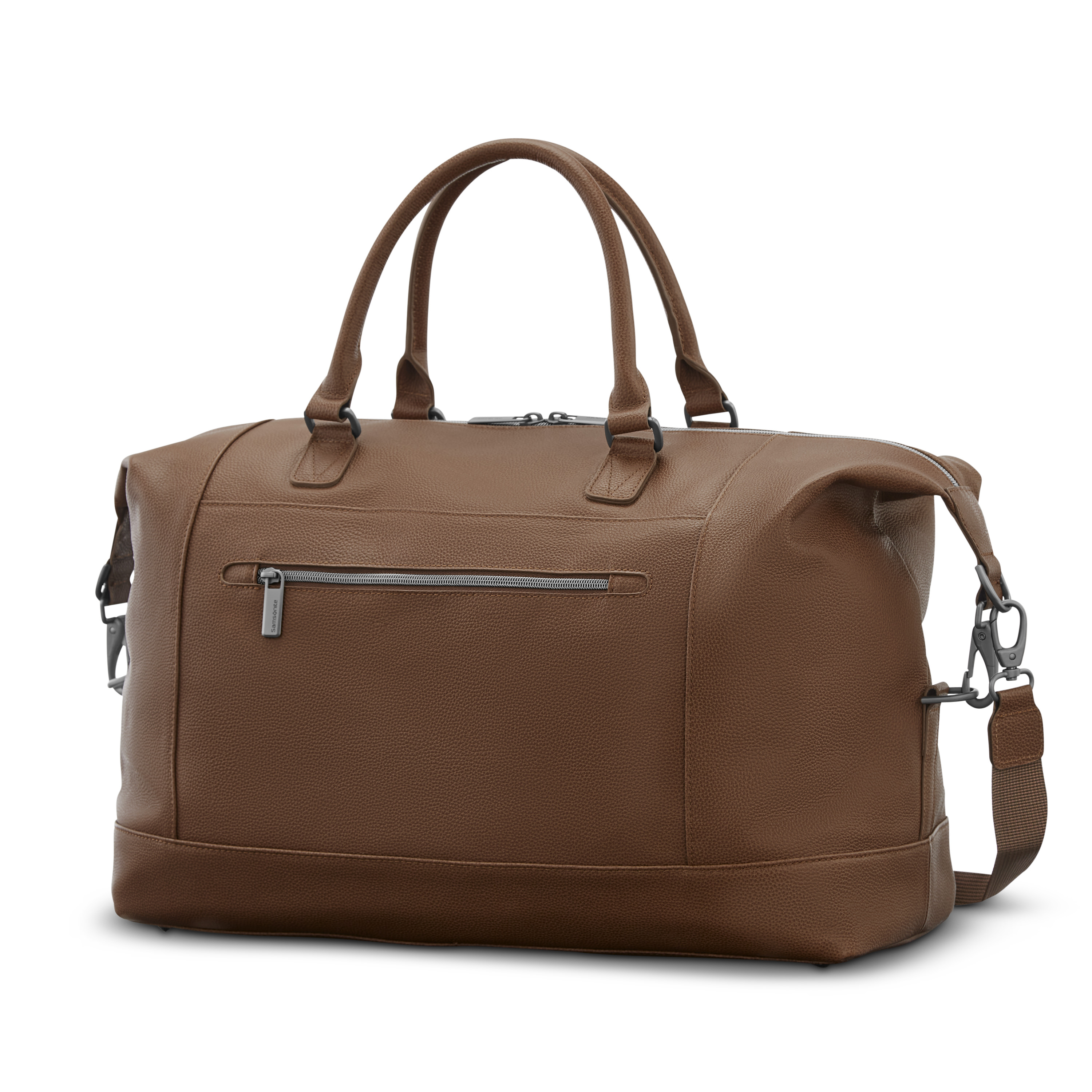 Brand Samsonite Collection Classic Leather Product ID 148394-1221 Product Name Weekender Duffle EAN/UPC 043202979484 Construction PERSONAL GOODS Colour Cognac Material Constructed of genuine top-grain leather. Warranty 3 Years Feature • Stackit™ Strap - fits over most suitcase pull-handles for hassle-free combination travel. • Adjustable shoulder strap and bail handles offer two different carry options. • Spacious Interior - for packing all your essentials. • Exterior pocket is perfect for storing items you want easy access to. • Constructed of genuine top-grain leather. Overall Depth/Length (in) 11.5 Overall Width (in) 8.3 Overall Height (in) 19.3 Packing Depth/Length (in) 11.5 Packing Width (in) 8.3 Packing Height (in) 19.3 Weight (lb) 3.08647167052 Capacity (litres) 30.188003494840007