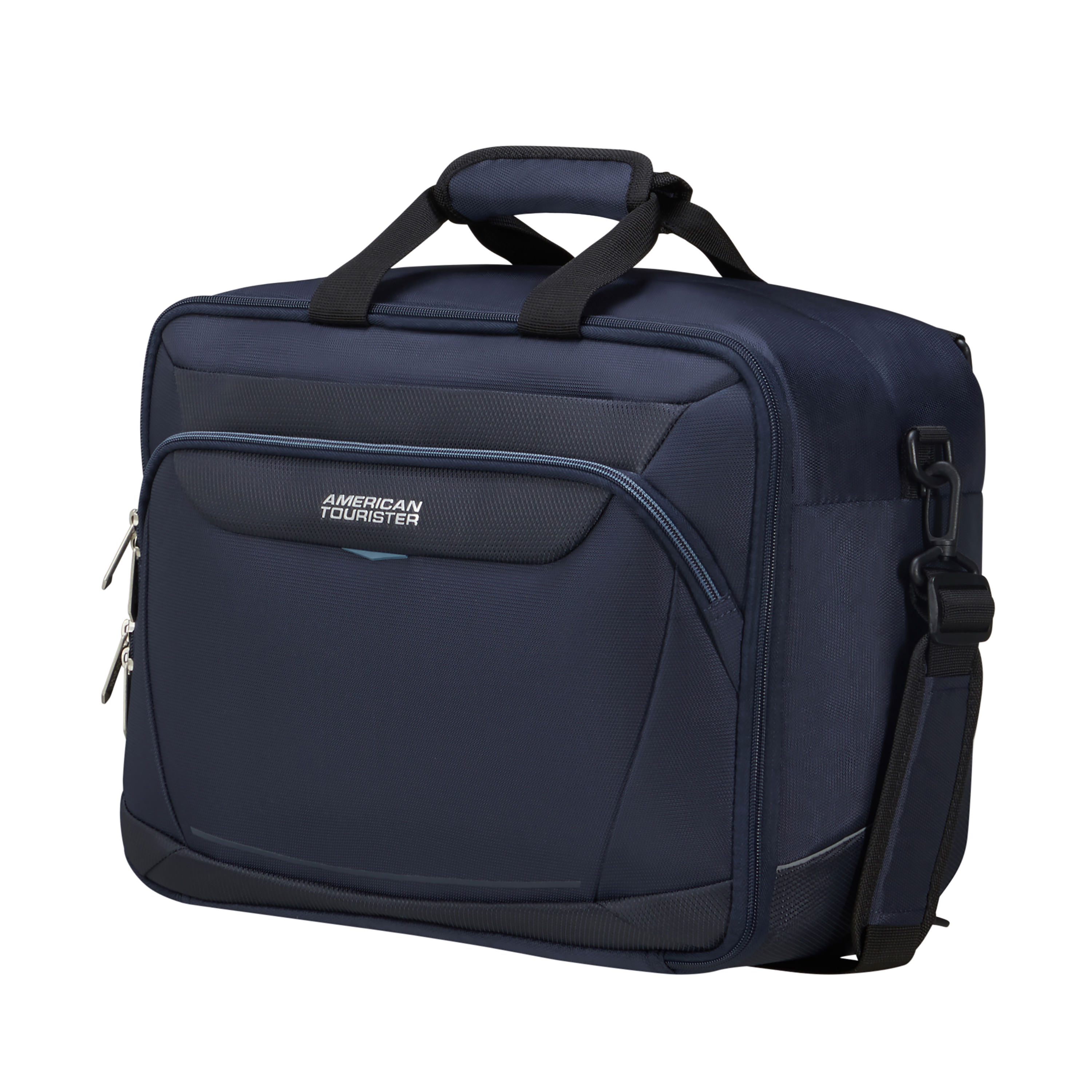 Brand American Tourister Collection SummerRide Product ID 149502-1596 Product Name Convertible Boarding Bag EAN/UPC 049845330415 Construction SOFTSIDE Colour Navy Material Constructed of durable 100% polyester fabric. Warranty 3 Years Feature • The lining of this product was made from rPET fabric, made from plastic bottles used by consumers. • Hidden backpack straps tuck away when not in use. • Multiple exterior pockets are perfect for storing items you want easy access to. • Removable strap allows you to adjust the length for a more comfortable fit. • SmartSleeve™ allows you to slip the bag over most suitcase pull-handles so it can sit securely on top for hassle-free travel. Overall Depth/Length (in) 16.2 Overall Width (in) 5.7 Overall Height (in) 11.6 Packing Depth/Length (in) 16.2 Packing Width (in) 5.7 Packing Height (in) 11.6 Weight (lb) 1.3 Capacity (litres) 18