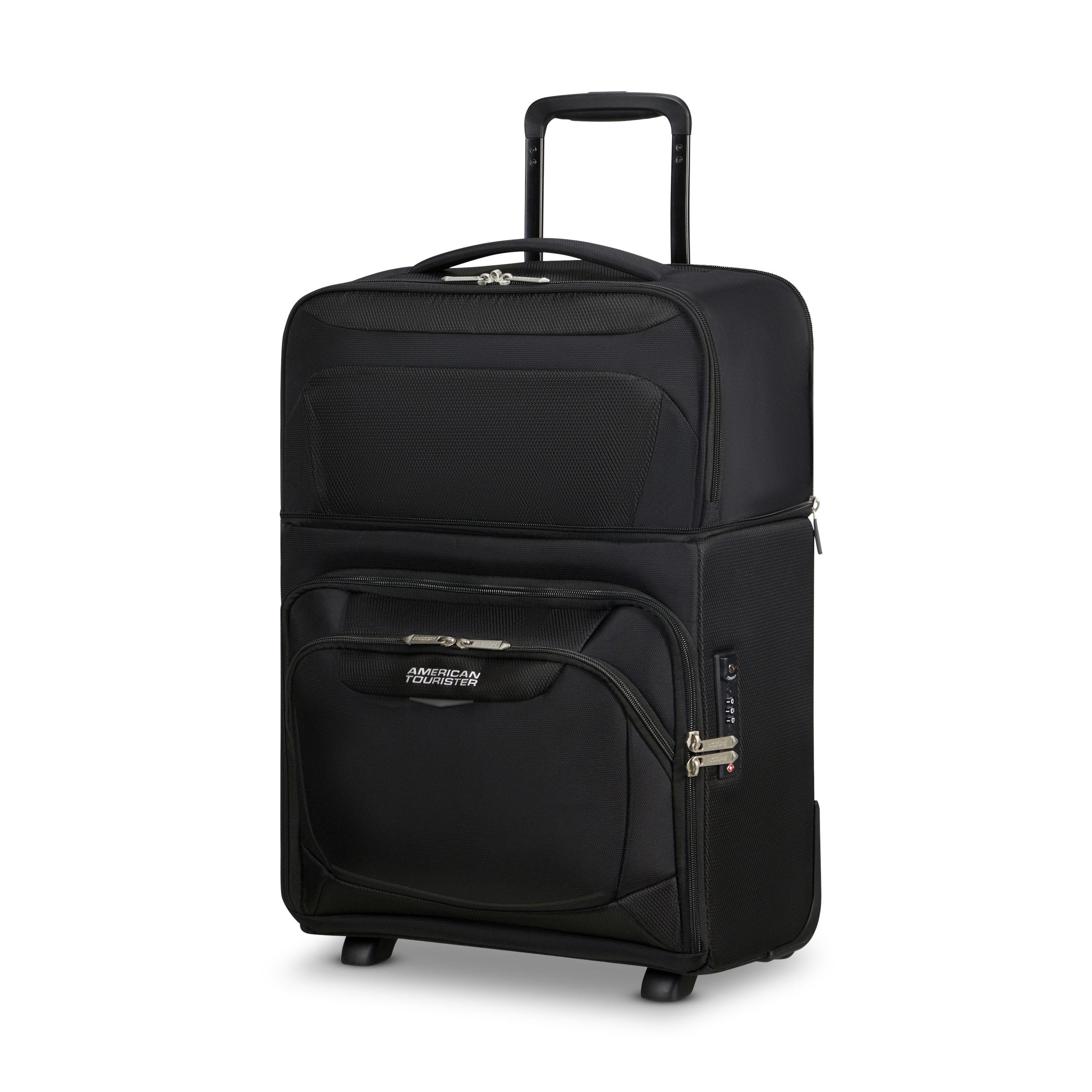 Brand American Tourister Collection SummerRide Product ID 152552-1041 Product Name Expandable Upright Underseater EAN/UPC 049845336424 Construction SOFTSIDE Colour Black Material Constructed of durable 100% polyester fabric. Warranty 10 Years Feature • Underseater can expand to become a Carry-On size with the height of 21.5" (55cm) • Super lightweight. • Integrated TSA-approved lock provides added security when checking in your luggage. • Pull handle stores away in zippered compartment when not in use. • Meets most Carry-On* requirements. *Carry-On size and weight allowances vary by airline Overall Depth/Length (in) 15.1 Overall Width (in) 9 Overall Height (in) 15.3 Packing Depth/Length (in) 14.8 Packing Width (in) 7 Packing Height (in) 11.2 Weight (lb) 4.9 Capacity (litres) 19