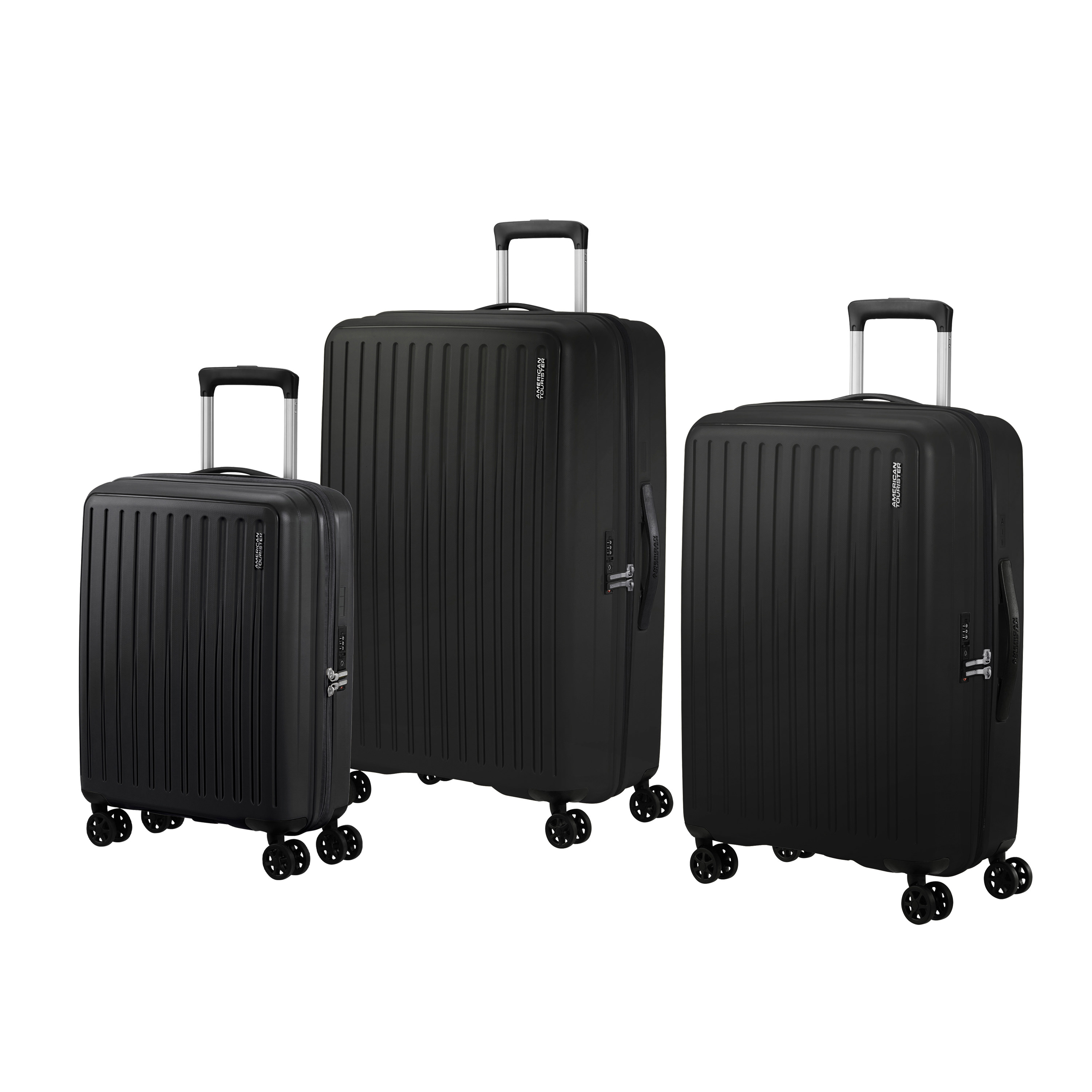 Brand American Tourister Collection Rejoy Product ID 156146-0651 Product Name Spinner 3 Piece Set (CO/M/L) EAN/UPC 049845348649 Construction HARDSIDE Colour True Black Warranty 10 Years Feature • Four dual, airflow Spinner wheels so you can easily roll an upright case. • Expandability - Extra expansion on the case allows you to easily pack all your belongings. • Integrated TSA-approved lock provides added security when checking in your luggage. • Personalization stickers come with every letter in the alphabet with the addition of symbols and icons to customize your luggage. • Meets most Carry-On* requirements. *Carry-On size and weight allowances vary by airline Overall Depth/Length (in) 20.1 Overall Width (in) 11.5 Overall Height (in) 30.3 Packing Depth/Length (in) 19 Packing Width (in) 10.5 Packing Height (in) 27.1 Weight (lb) 22.7 Capacity (litres) 89