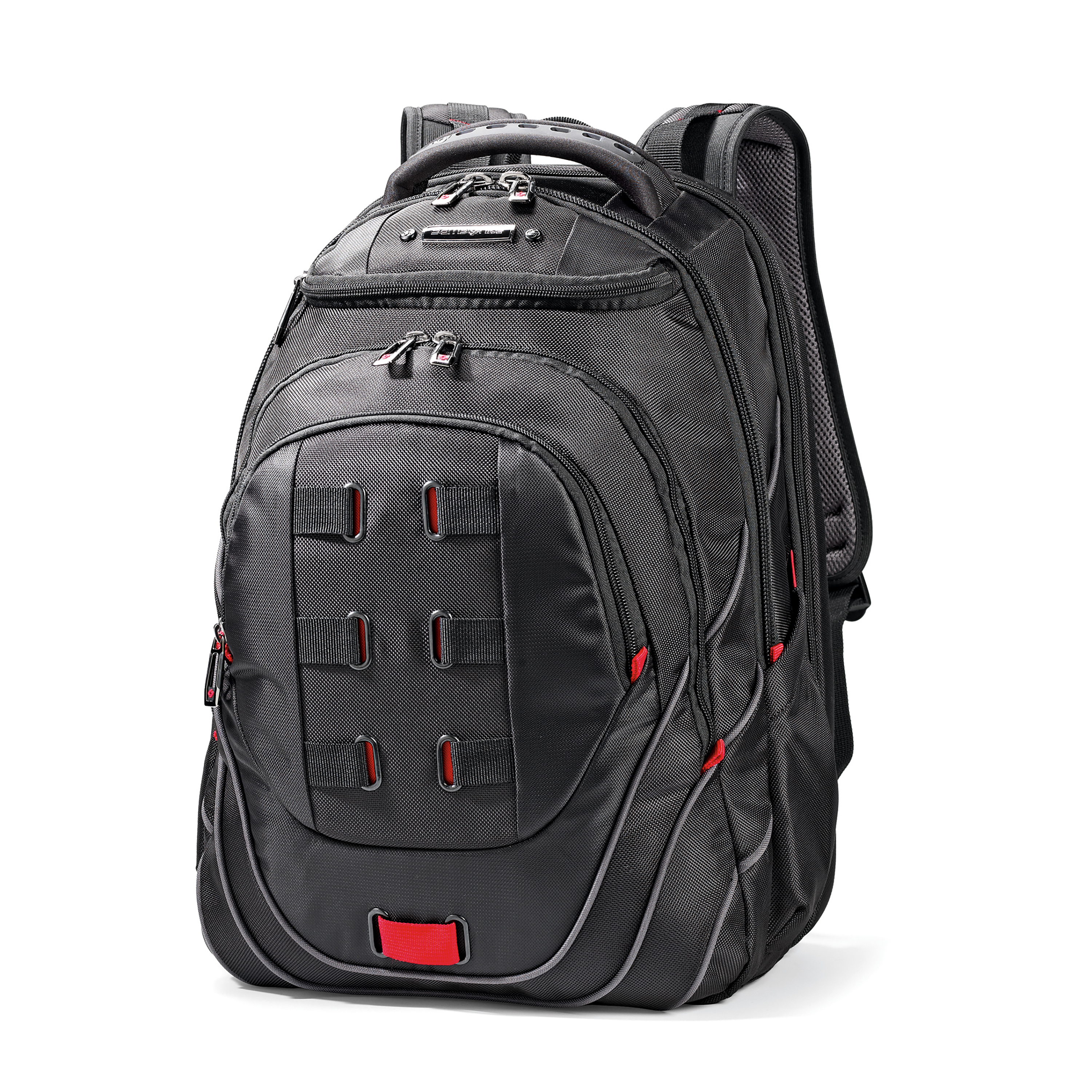 Brand Samsonite Collection Tectonic 2 Product ID 51531-1073 Product Name Laptop Backpack PFT EAN/UPC 043202542701 Construction SOFTSIDE Colour Black/Red Warranty 3 Years Feature • PerfectFit™ adjustable laptop system provides a custom fit for various sized laptops. • SmartSleeve™ allows you to slip the bag over most suitcase pull-handles so it can sit securely on top for hassle-free travel. • Padded shoulder straps with sunglass loop. • Wide base provides stability when case is open. • Numerous exterior and interior pockets for complete organization possibilites. Overall Depth/Length (in) 13 Overall Width (in) 9 Overall Height (in) 19 Packing Depth/Length (in) 13 Packing Width (in) 9 Packing Height (in) 19 Weight (lb) 2.733732051032 Capacity (litres) 36.428443271999996