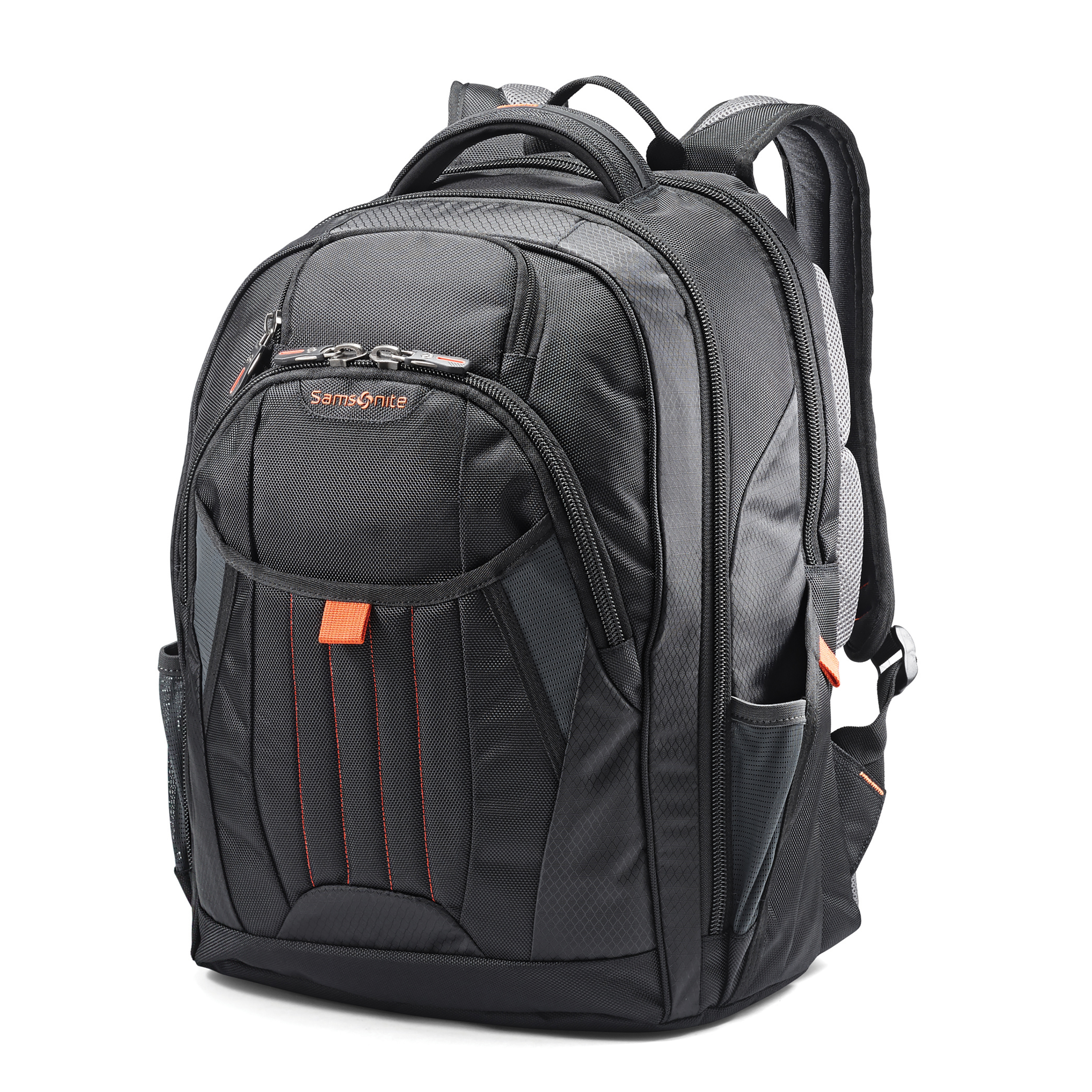Brand Samsonite Collection Tectonic 2 Product ID 66303-1070 Product Name Large Backpack EAN/UPC 043202645235 Construction SOFTSIDE Colour Black/Orange Warranty 3 Years Feature • Padded laptop pocket for extra protection. Fits most 17" laptops. • SmartSleeve™ allows you to slip the bag over most suitcase pull-handles so it can sit securely on top for hassle-free travel. • Side water bottle pockets • Wide base provides stability when case is open. • Padded shoulder straps with sunglass loop. Overall Depth/Length (in) 13.5 Overall Width (in) 8.8 Overall Height (in) 18 Packing Depth/Length (in) 13.5 Packing Width (in) 8.8 Packing Height (in) 18 Weight (lb) 2.469177336416 Capacity (litres) 35.0420976576